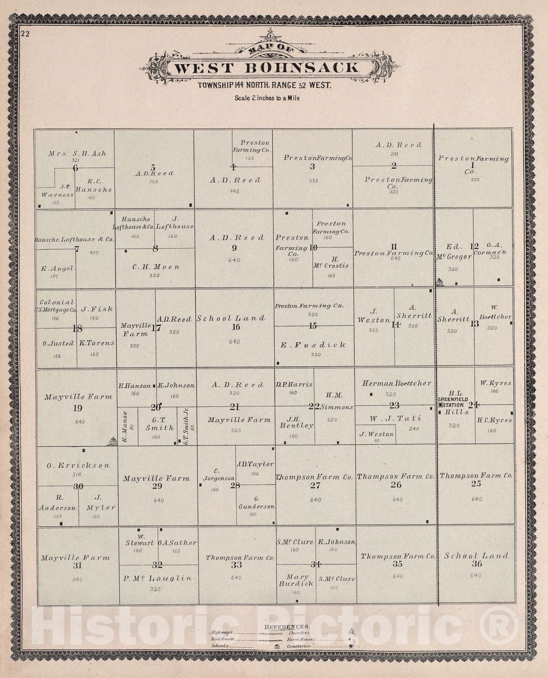 We print high quality reproductions of historical maps, photographs, prints, etc. Because of their historical nature, some of these images may show signs of wear and tear -