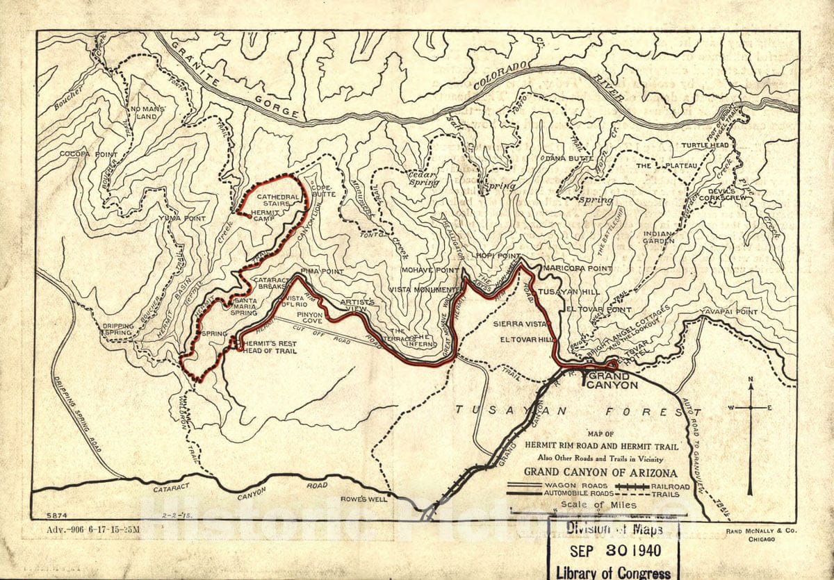Historic 1915 Map - Map of Hermit Rim Road and Hermit Trail.