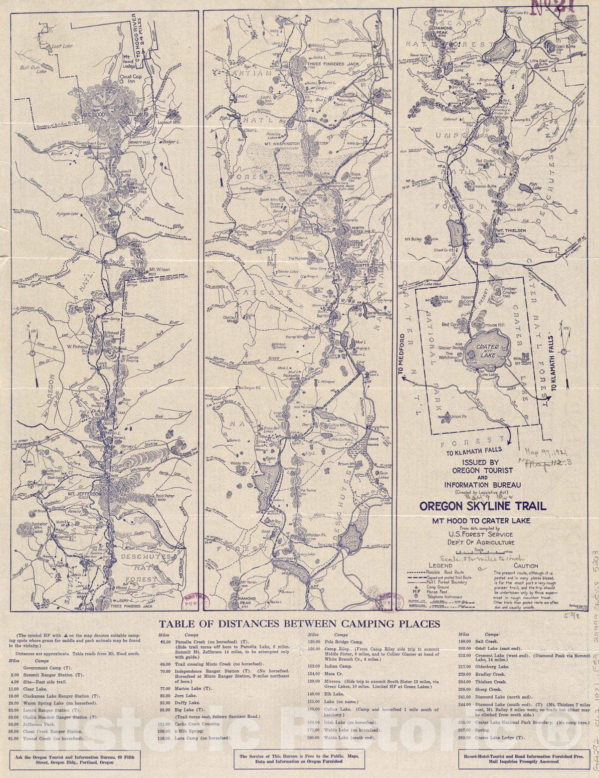 • Historical Map, 1921 Oregon Skyline Trail : Mt. Hood to Crater Lake, Vintage Wall Art