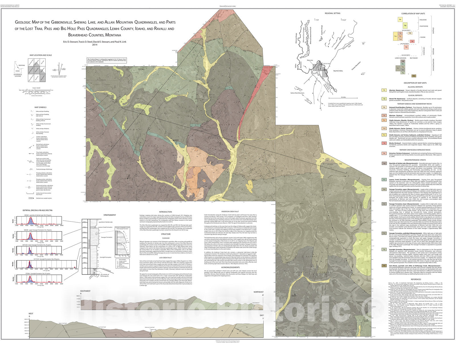 Map : Geologic Map of Gibbonsville, Shewag Lake, and Allan Mountain Quadrangles, and Parts of the Lost Trail Pass and Big Hole Pass Quad, 2014 Cartography Wall Art :