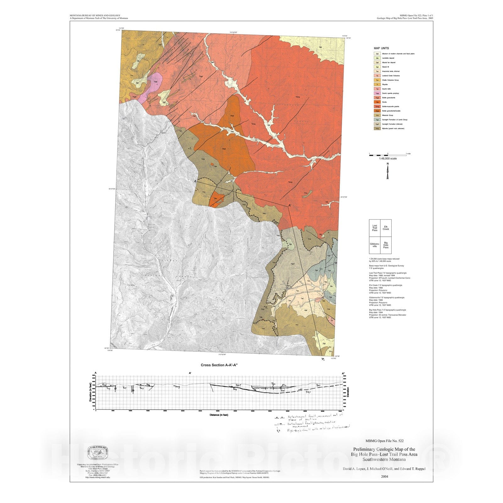 Map : Preliminary geologic map of the Big Hole Pass-Lost Trail Pass area, 2005 Cartography Wall Art :