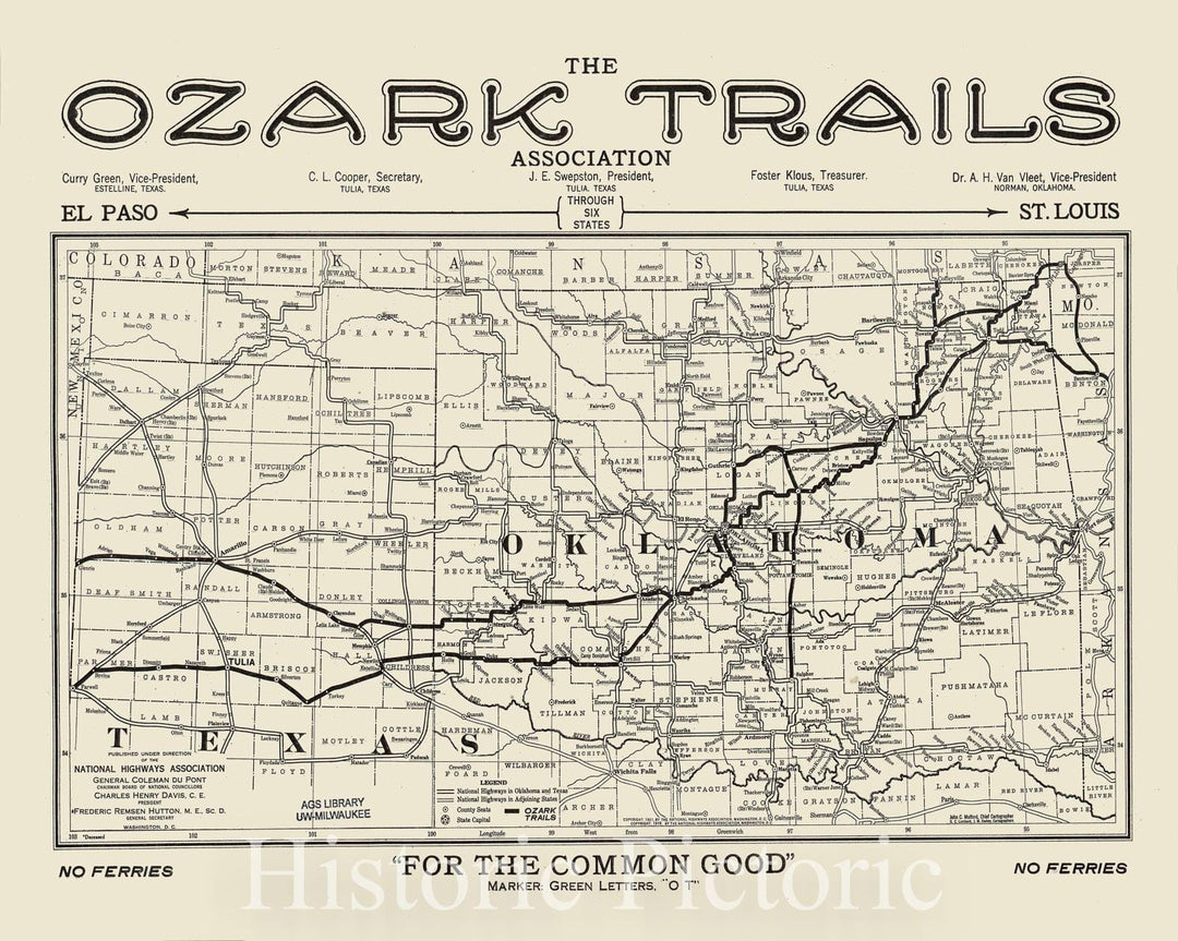Map : Oklahoma 1921, [National highways map of Oklahoma and the Texas Panhandle : showing the Ozark Trails route] , Antique Vintage Reproduction