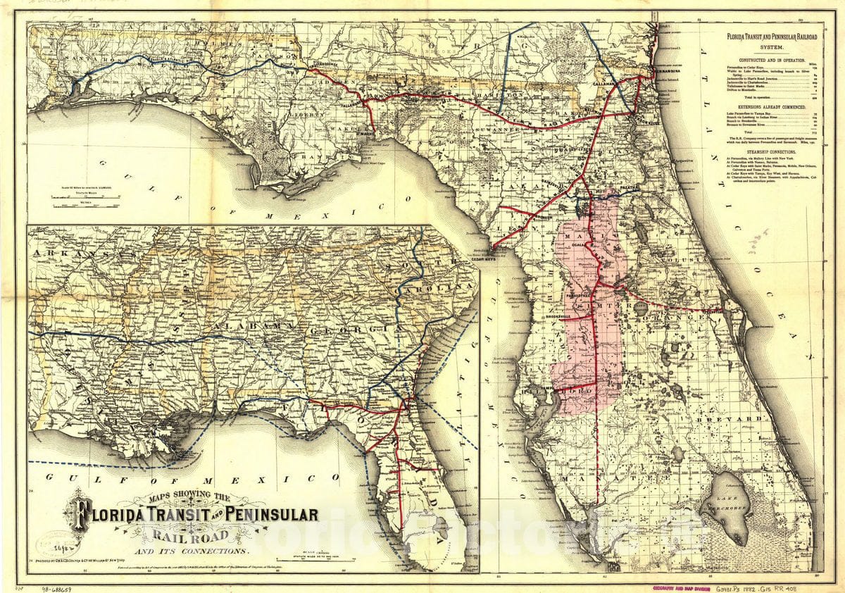 • Historic 1882 Map - Maps Showing The Florida Transit and Peninsula Rail Road and its Connections.