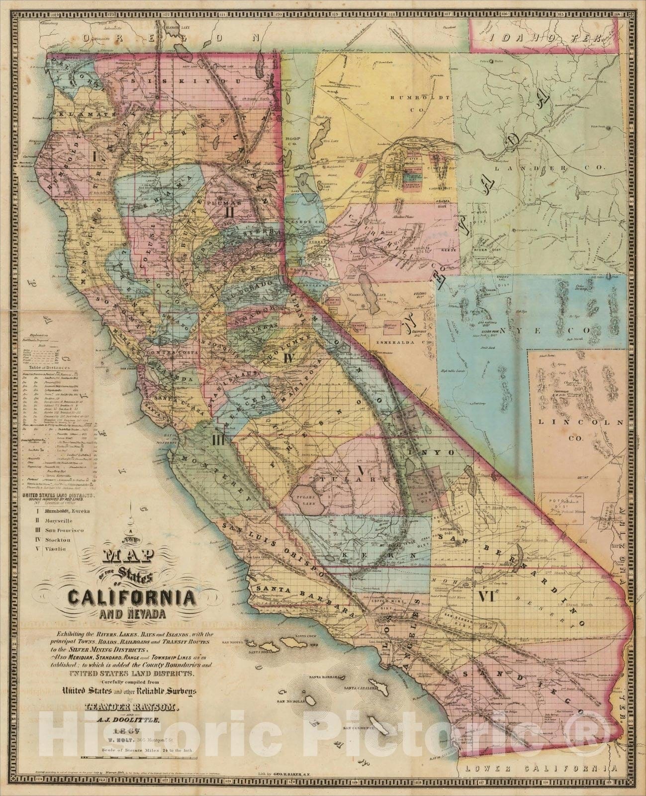 Historic Map : California and Nevada Exhibiting the Rivers, Lakes, and Islands, with Railroads and Transit Routes to the Silver Mining Districts, 1867, Vintage Wall Art