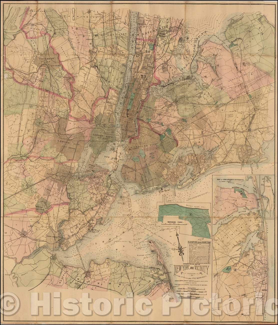 • .Historic Map - Topographical of New York and Embracing Fifteen Cities and above 1700 Square Miles. Showing Rapid Transit Routes Railroads Roads Canals, 1870 - Vintage Wall Art