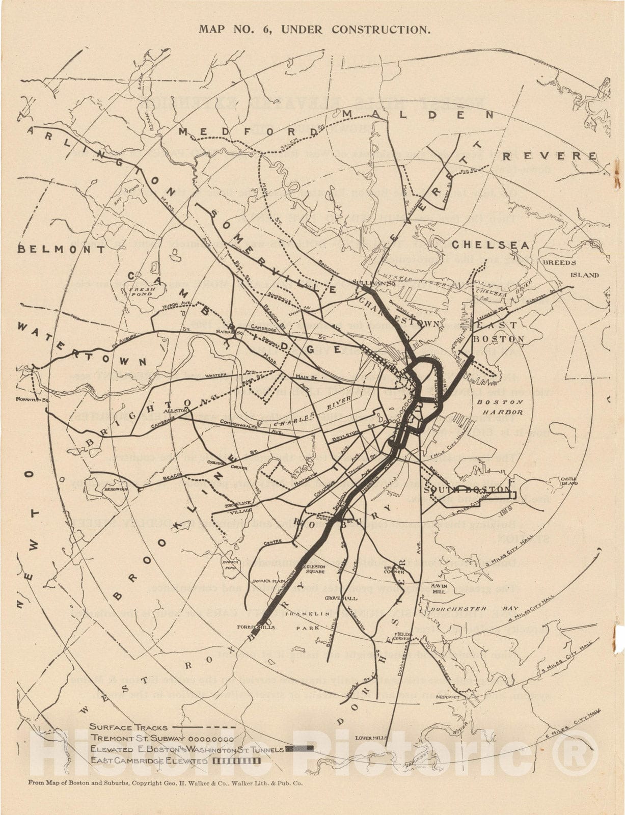 • .Historic Map : Boston Elevated Railway Co. Informational Maps, Map 6: Lines Under Construction 1910 Transit Railroad Catography , Vintage Wall Art