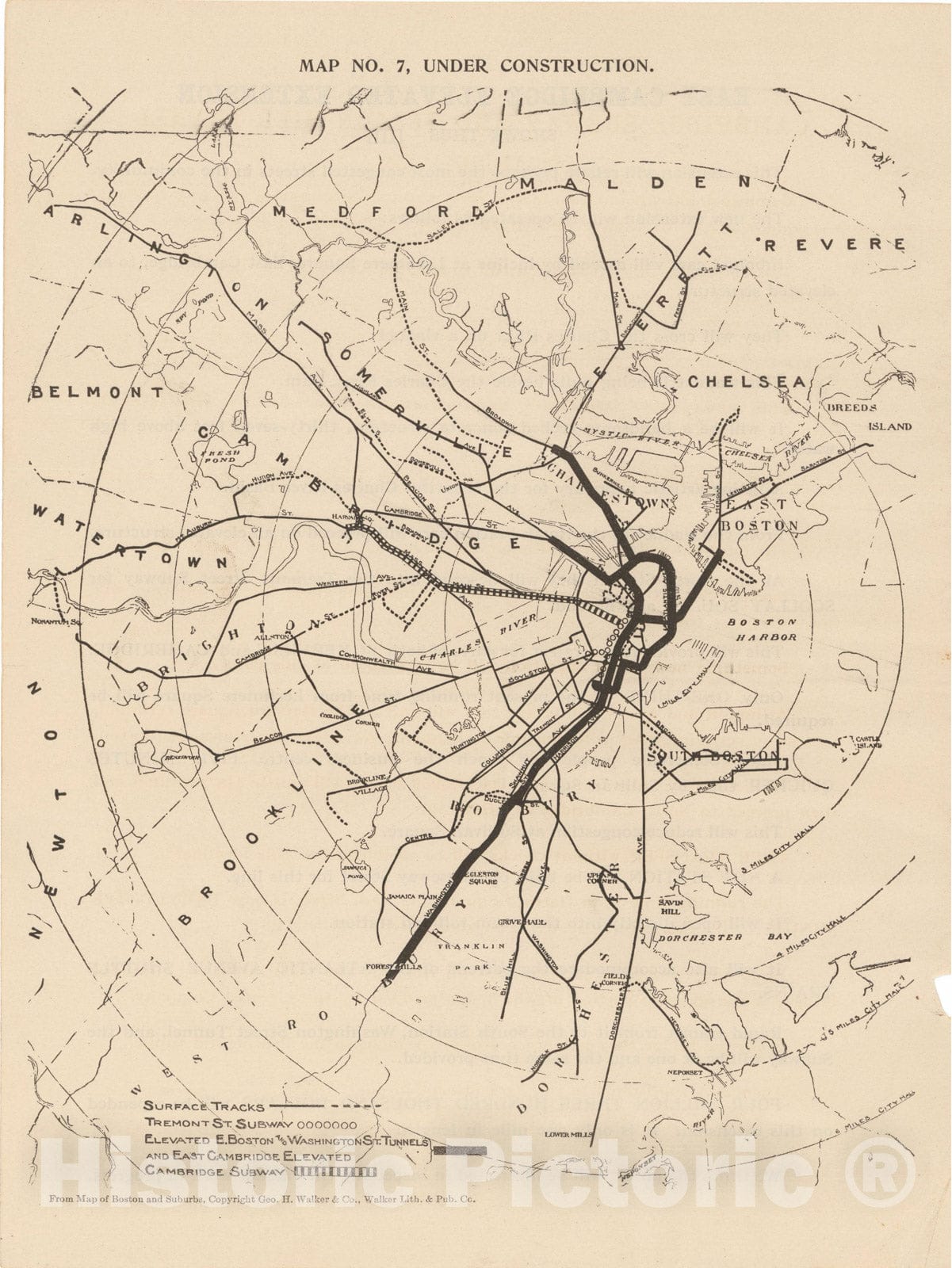 • .Historic Map : Boston Elevated Railway Co. Informational Maps, Map 7: Lines Under Construction 1910 Transit Railroad Catography , Vintage Wall Art