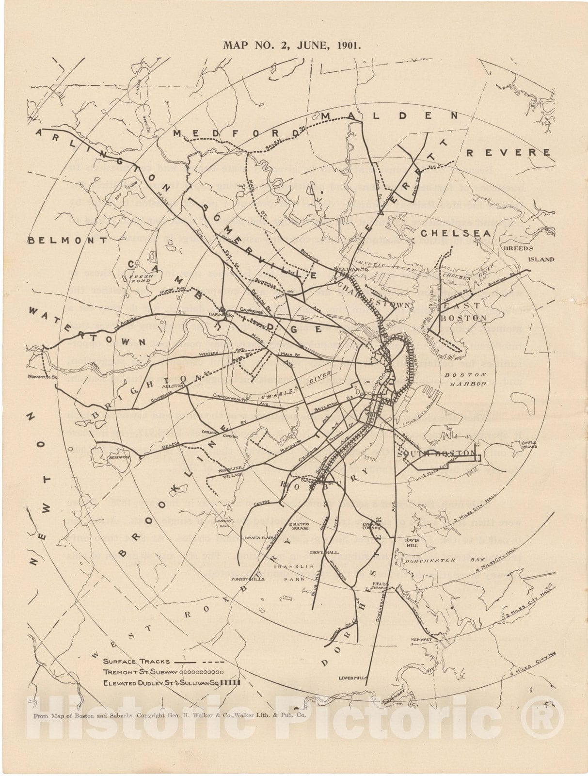 • .Historic Map : Boston Elevated Railway Co. Informational Maps, Map 2: System 1901; published 1910 Transit Railroad Catography , Vintage Wall Art