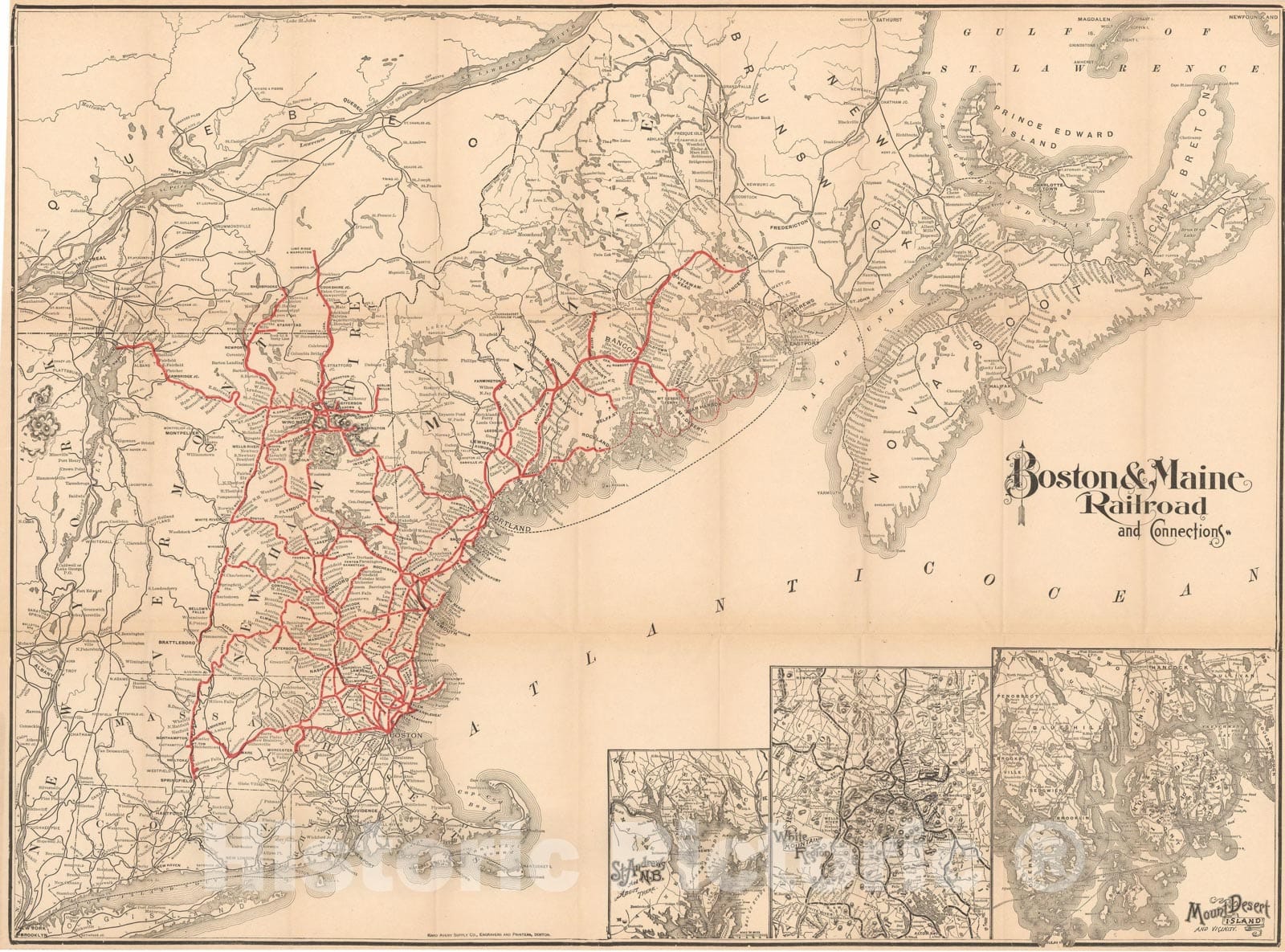 Historic Map : Boston & Maine Railroad and Connections 1897 Transit Railroad Catography , Vintage Wall Art