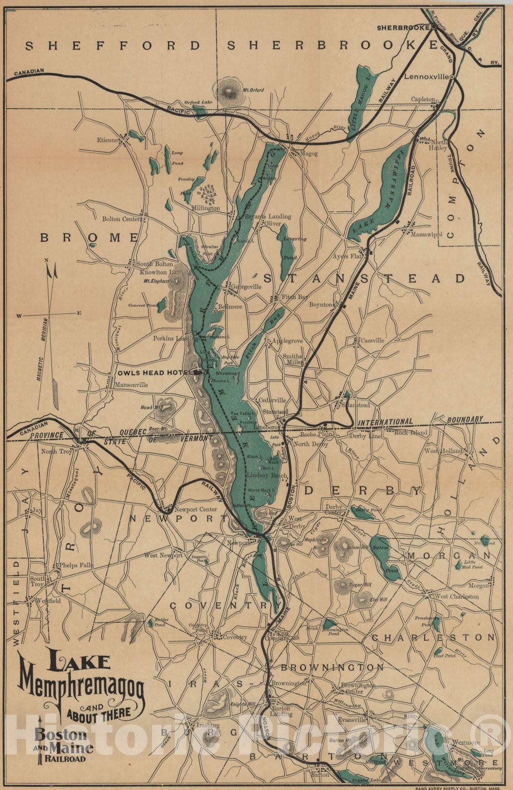 Historic Map : Boston & Maine Railroad Maps, Lake Memphremagog & About There 1903 Transit Railroad Catography , Vintage Wall Art