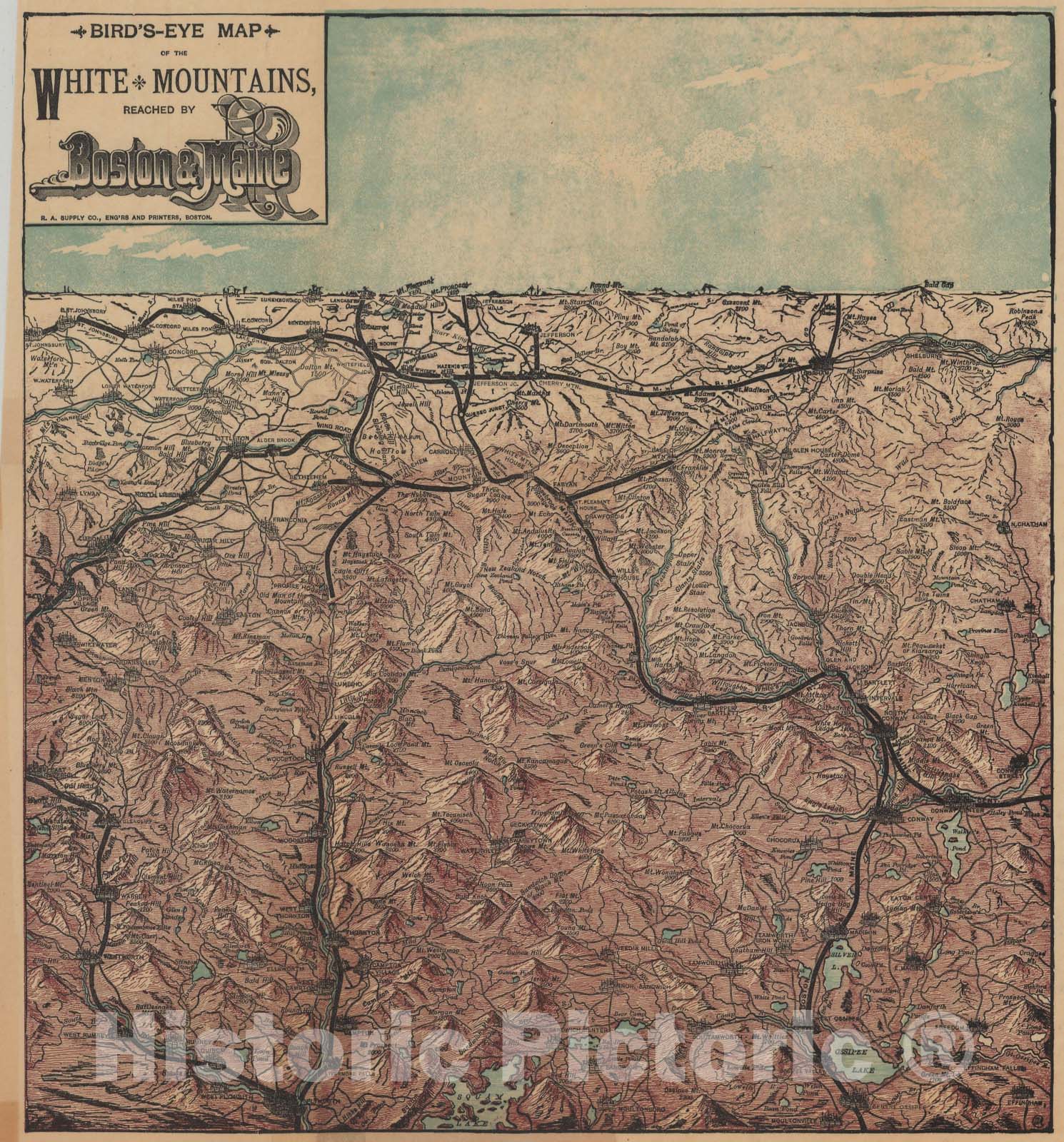Historic Map : Boston & Maine Railroad Maps, White Mountain Region 1901 Transit Railroad Catography , Vintage Wall Art