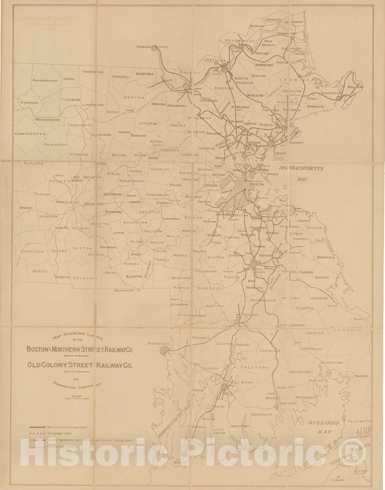 • .Historic Map : Boston & Northern and Old Colony Street Ry Co's 1905 Transit Railroad Catography , Vintage Wall Art