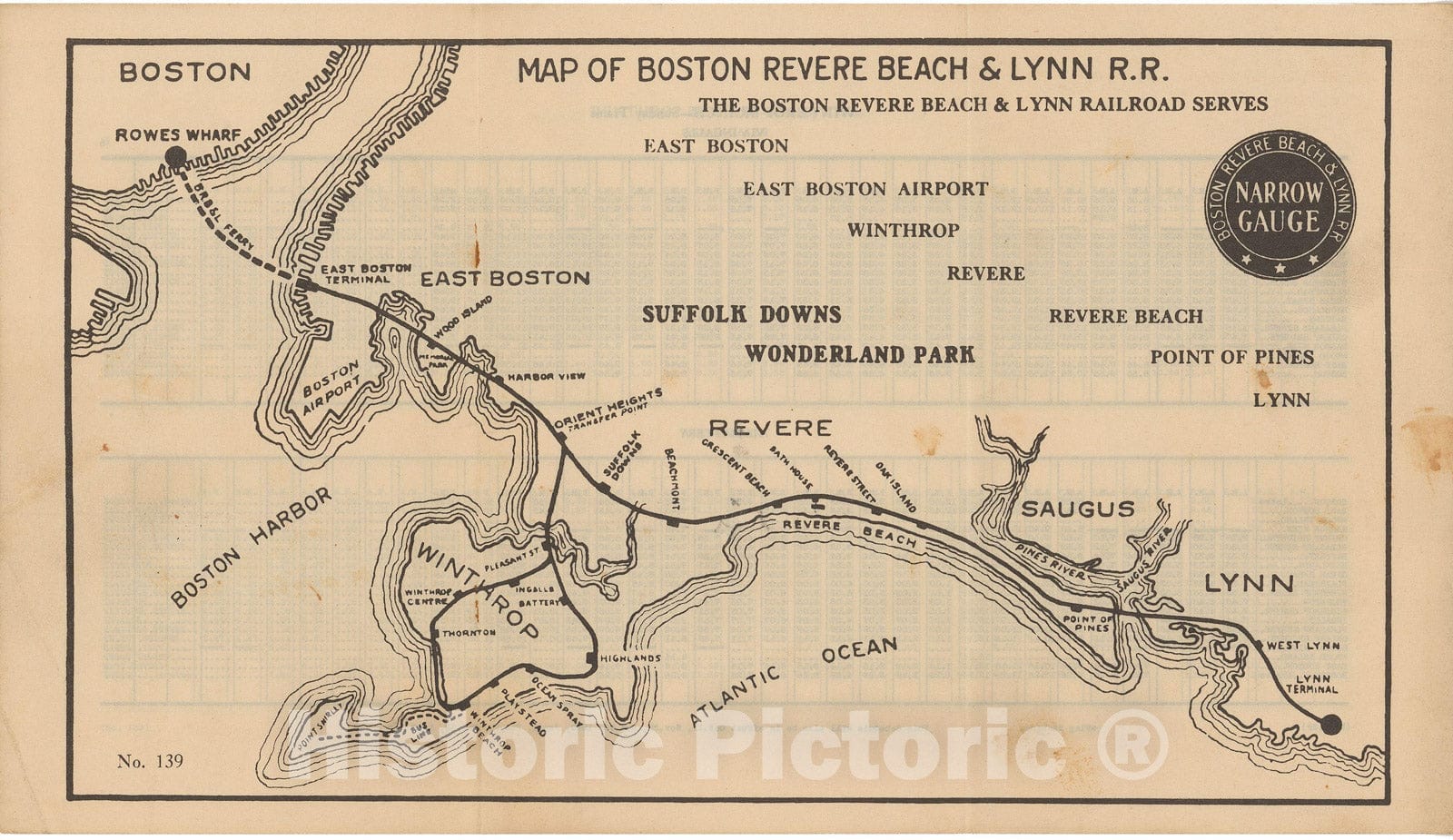 Historic Map : Boston, Revere Beach & Lynn RR 1939 Transit Railroad Catography , Vintage Wall Art