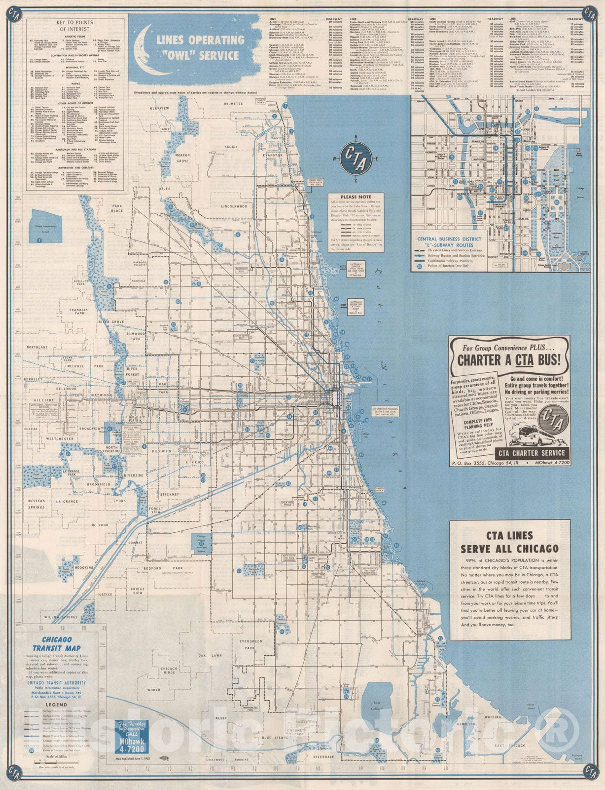 Historic Map : Chicago Transit Maps, Transit Map 1952 Railroad Catography , Vintage Wall Art