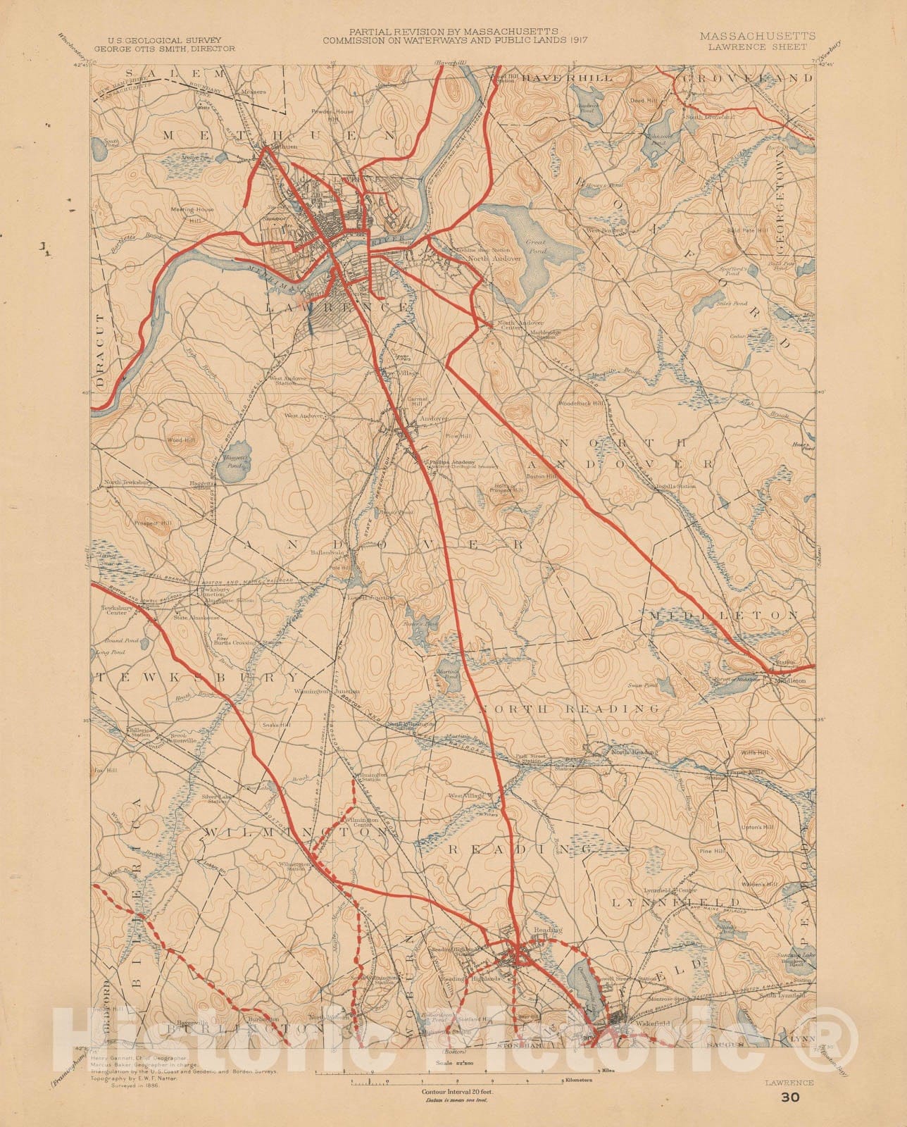 Historic Map : Eastern Massachusetts Street Railway Maps, Lawrence 1927 Transit Cartography , Vintage Wall Art