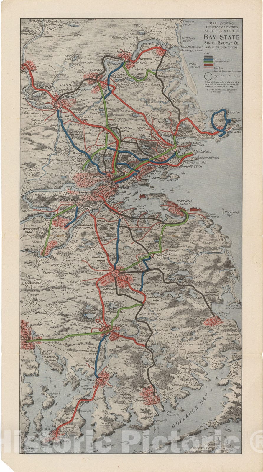 Historic Map : Greater Boston Transit Maps, Bay State Street Railway Company Map 1916 Railroad Catography , Vintage Wall Art