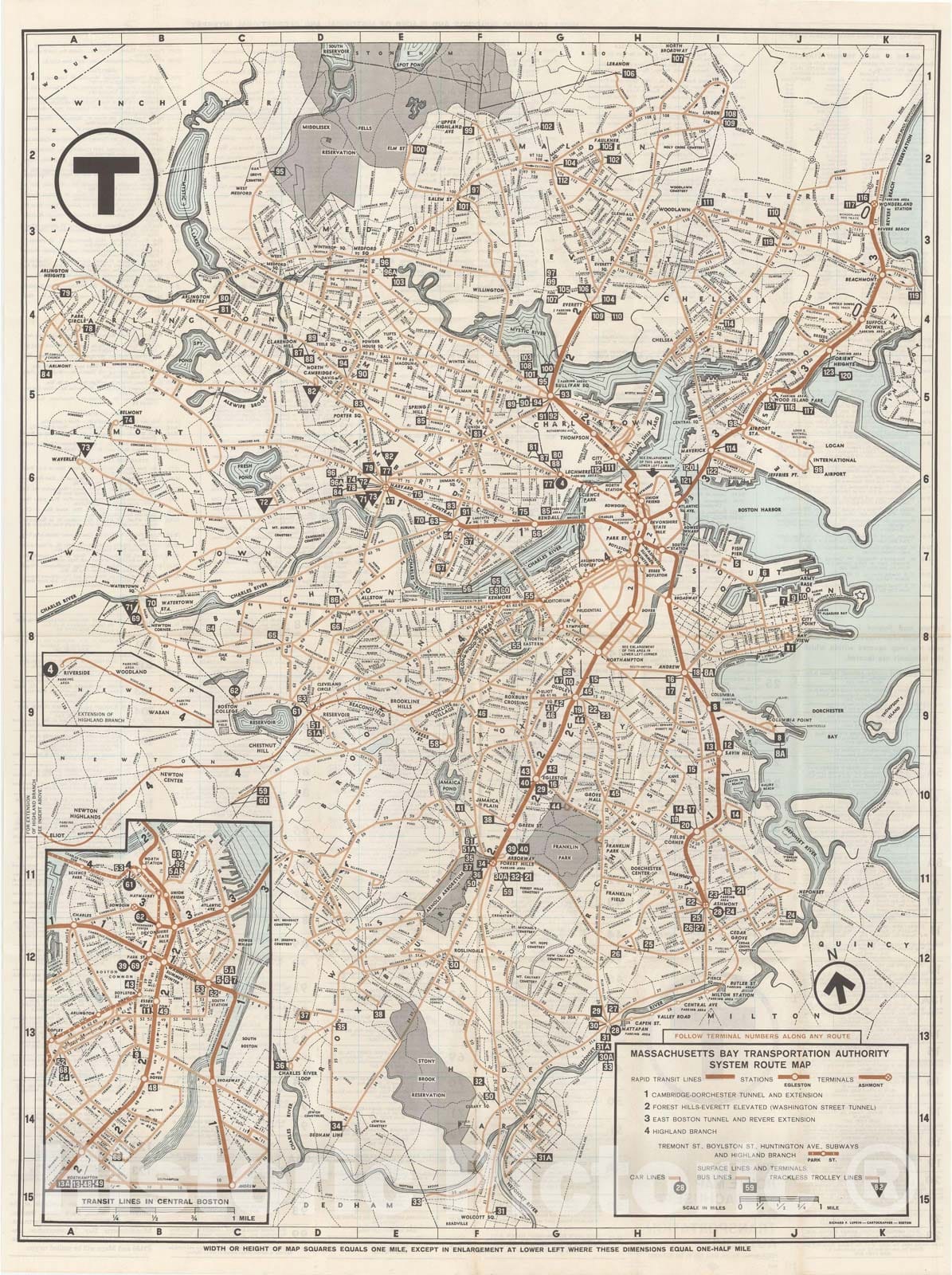 Greater Boston Transit Maps, MBTA System Route Map 1965