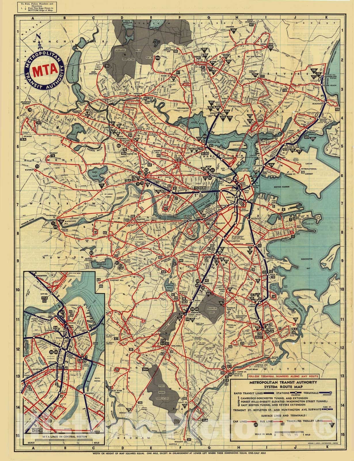 Greater Boston Transit Maps, Boston MTA System Route Map 1954