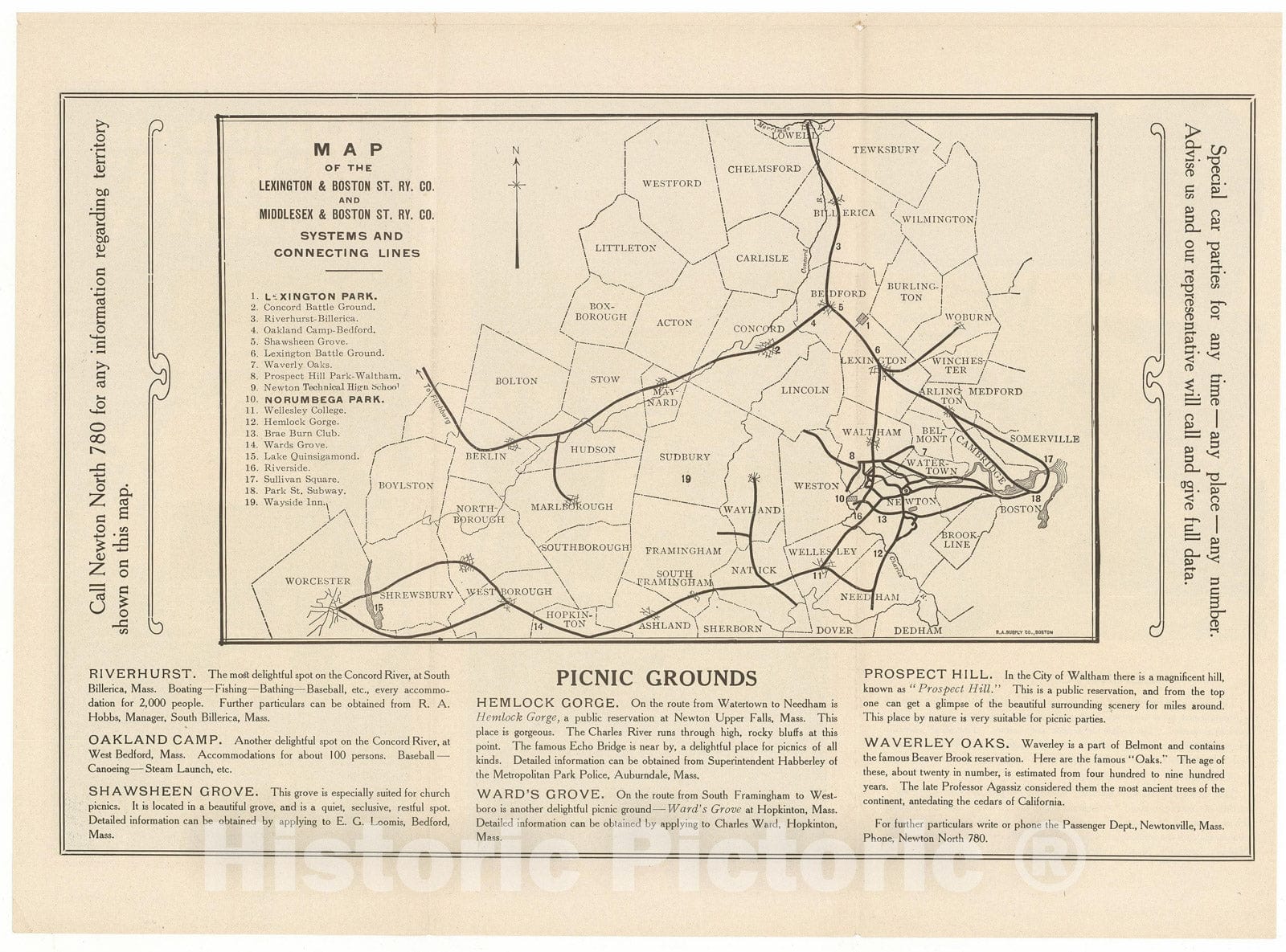 Historic Map : Lexington & Boston and Middlesex & Boston St. Rys 1910 Transit Cartography , Vintage Wall Art