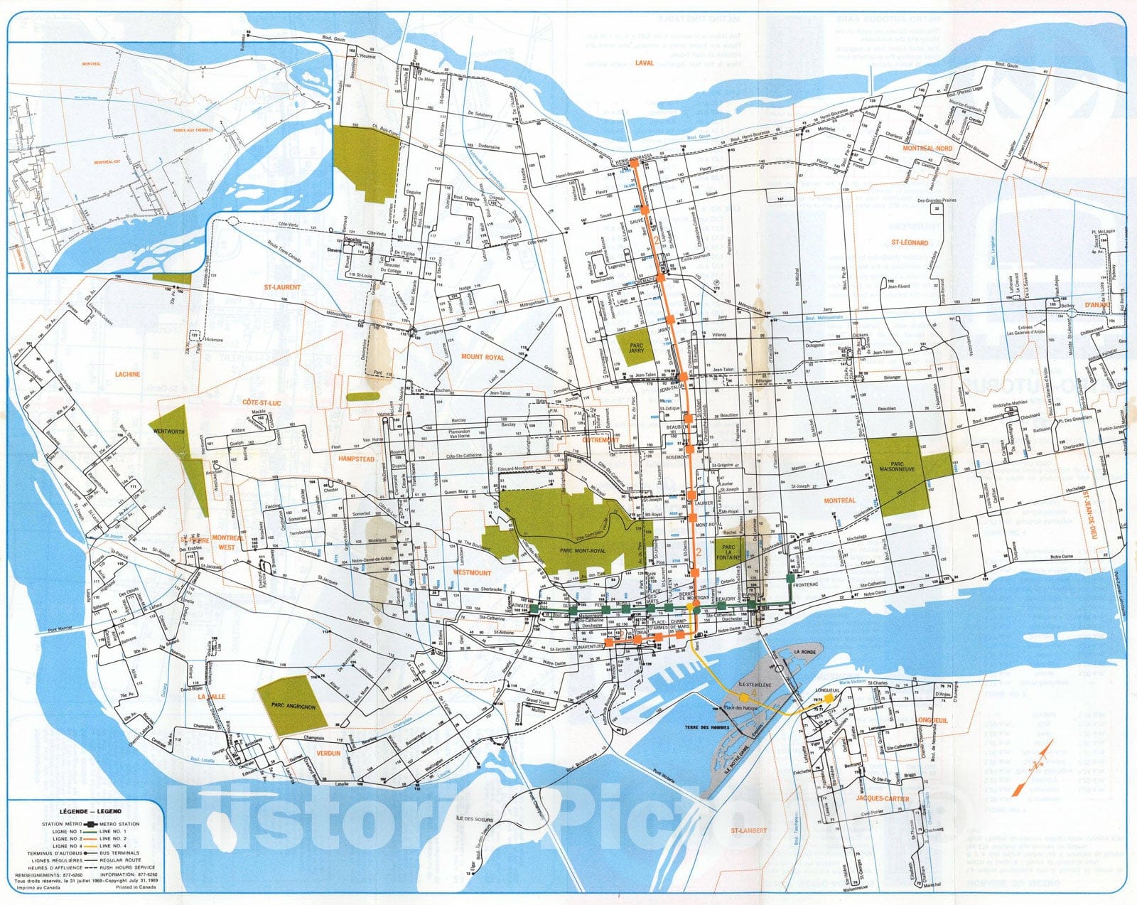Historic Map : Metro-Autobus System of Montreal 1969 Transit Railroad Catography , Vintage Wall Art