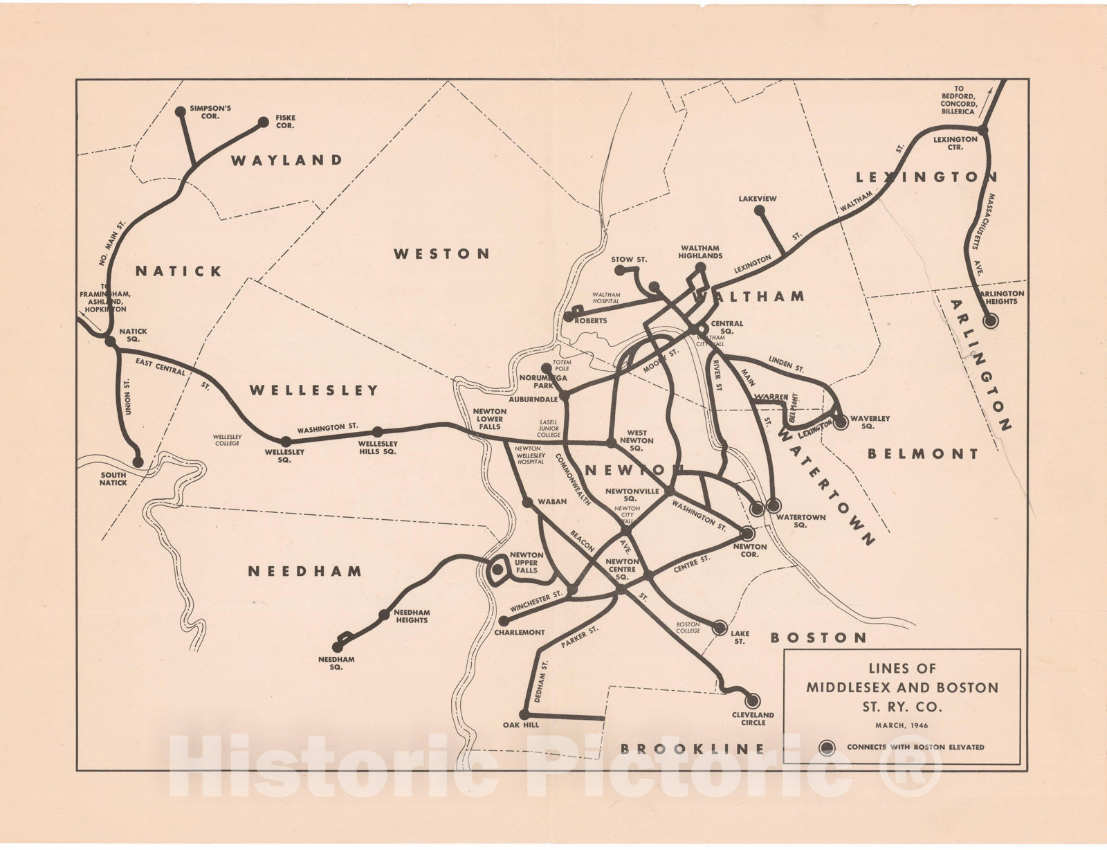 Historic Map : Middlesex and Boston Street Railway Lines 1946 Transit Cartography , Vintage Wall Art