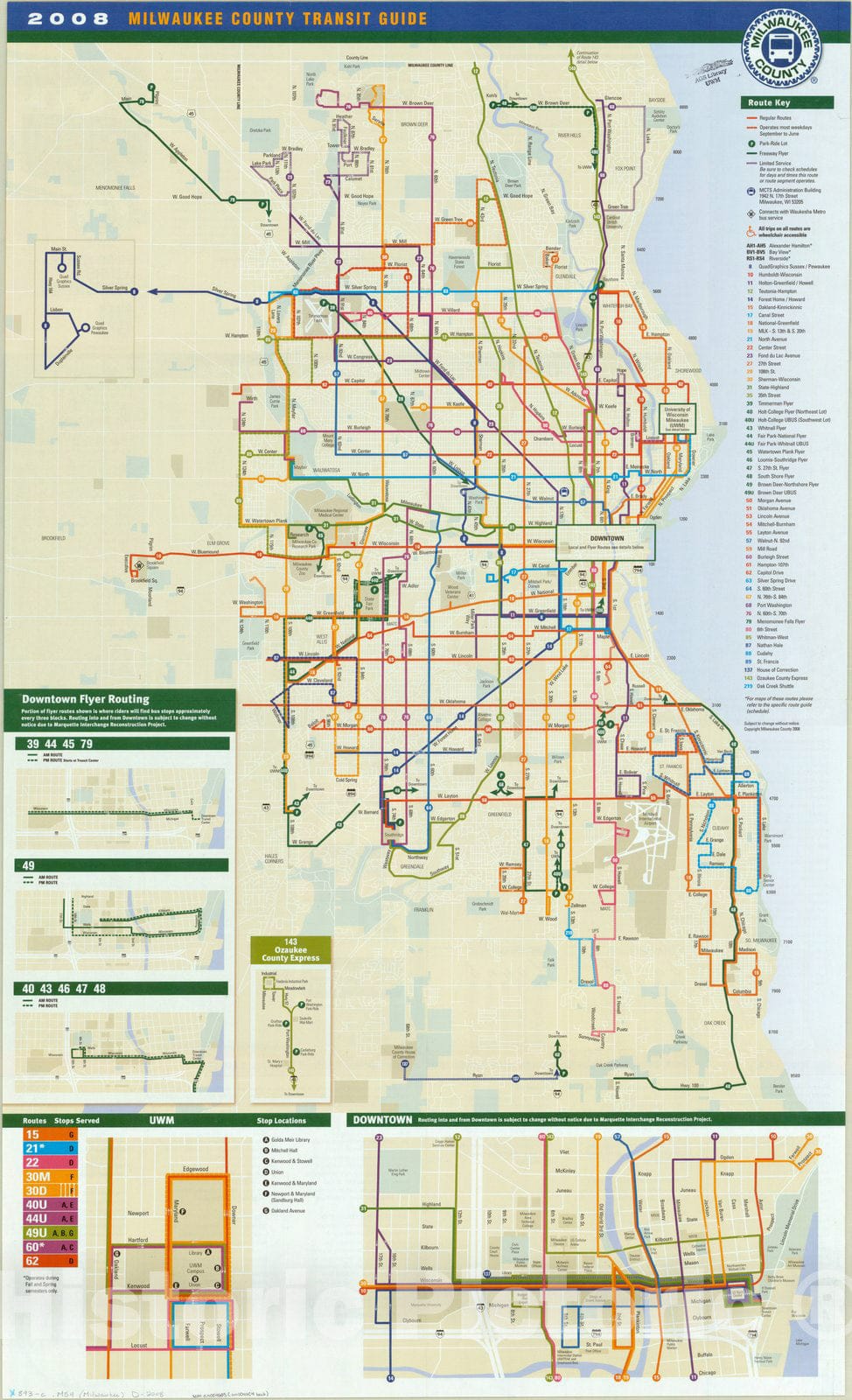 Map : Milwaukee County, Wisconsin 2008, Milwaukee County transit guide , Antique Vintage Reproduction