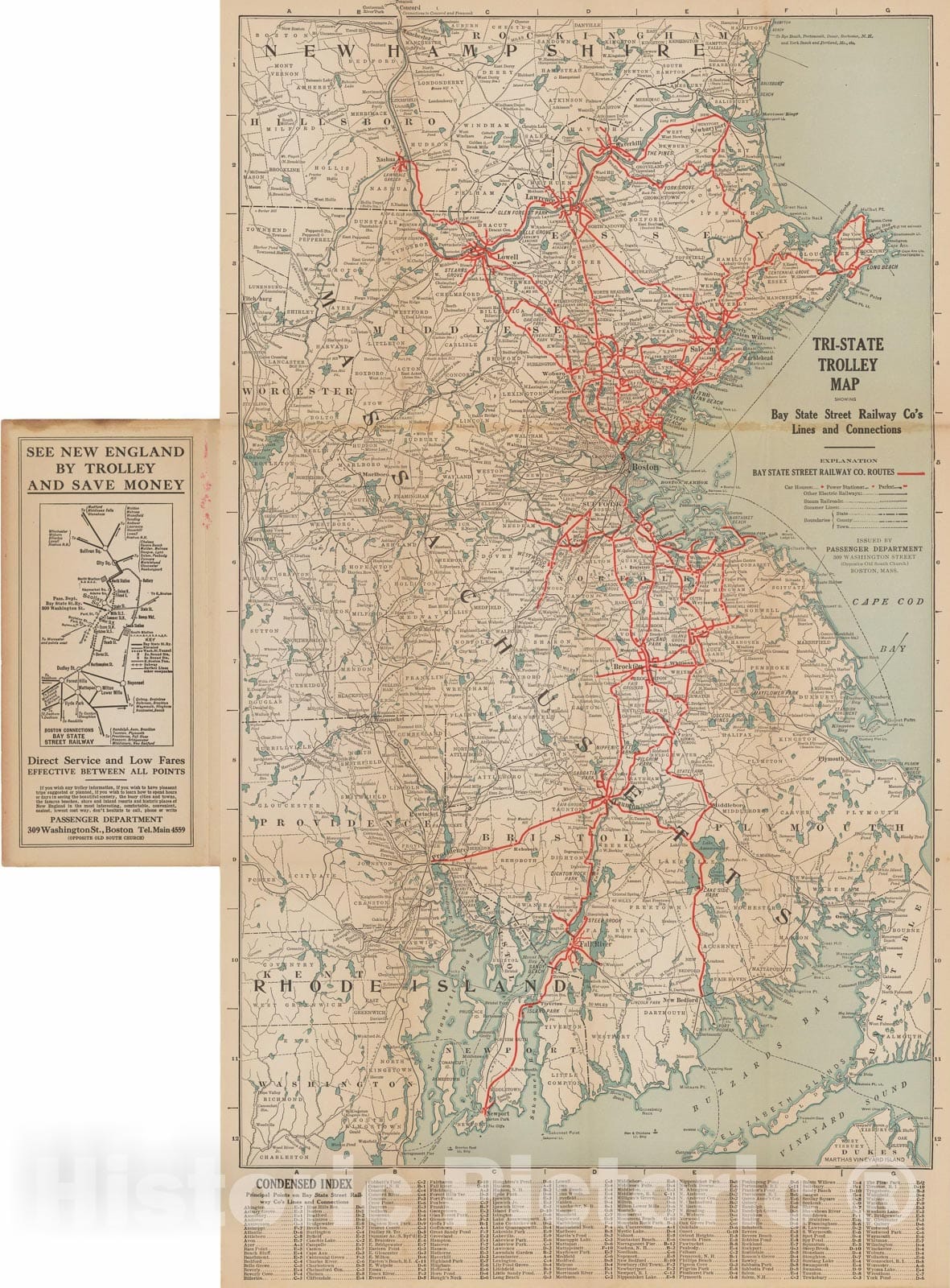 Historic Map : New Hampshire, Tri-State Trolley Map Transit Railroad Catography , Vintage Wall Art