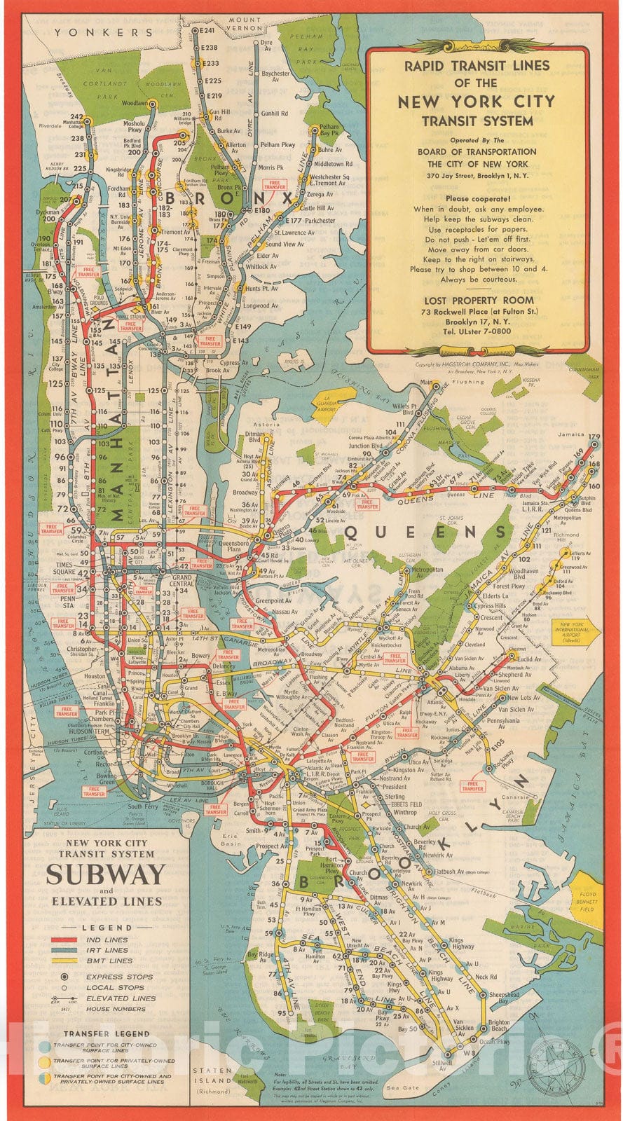 • .Historic Map : New York City Transit Maps, New York City Rapid Transit Lines 1952 Railroad Catography , v3, Vintage Wall Art