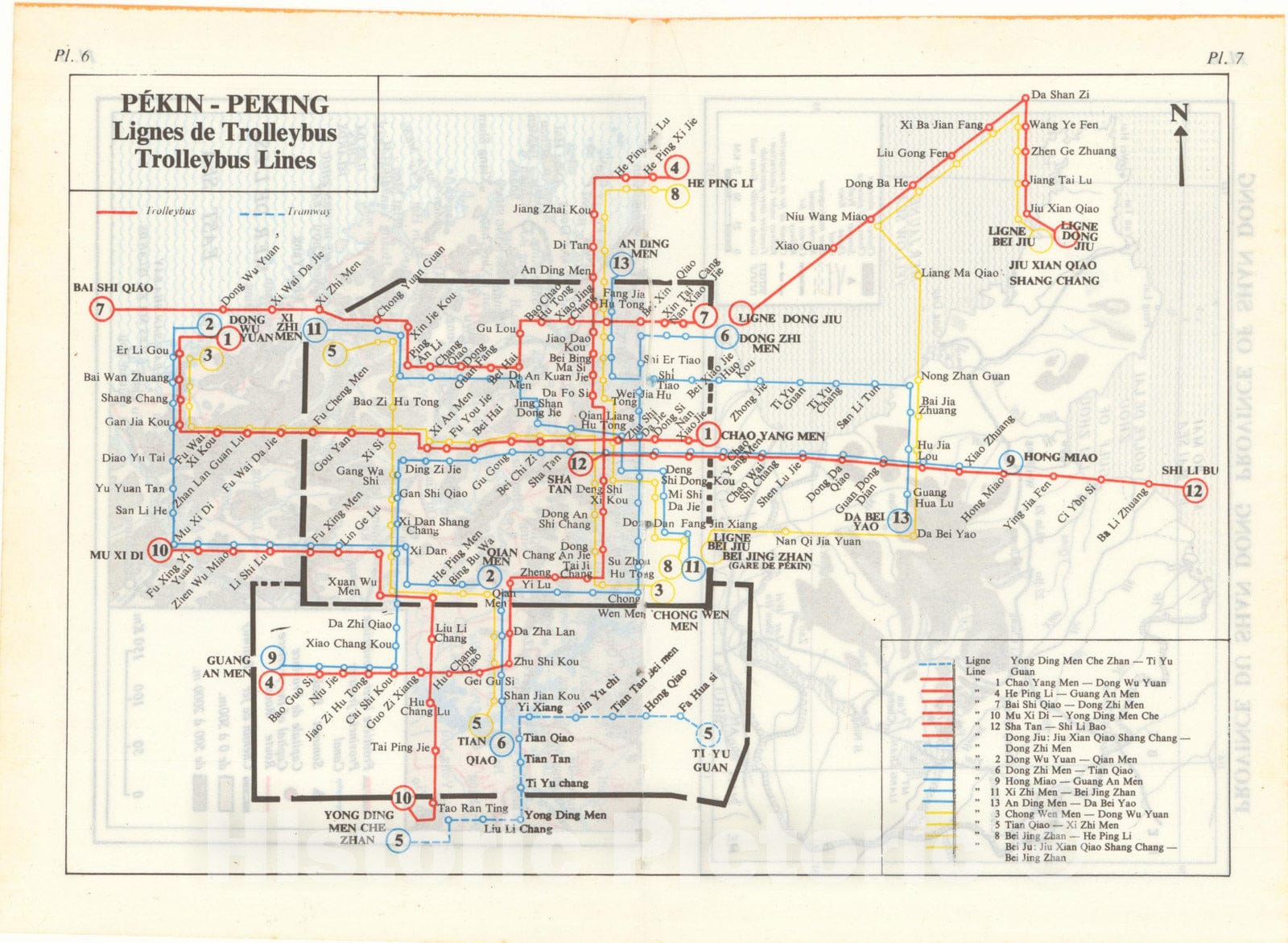 Historic Map : Peking Trolleybus Lines Transit Railroad Catography , Vintage Wall Art