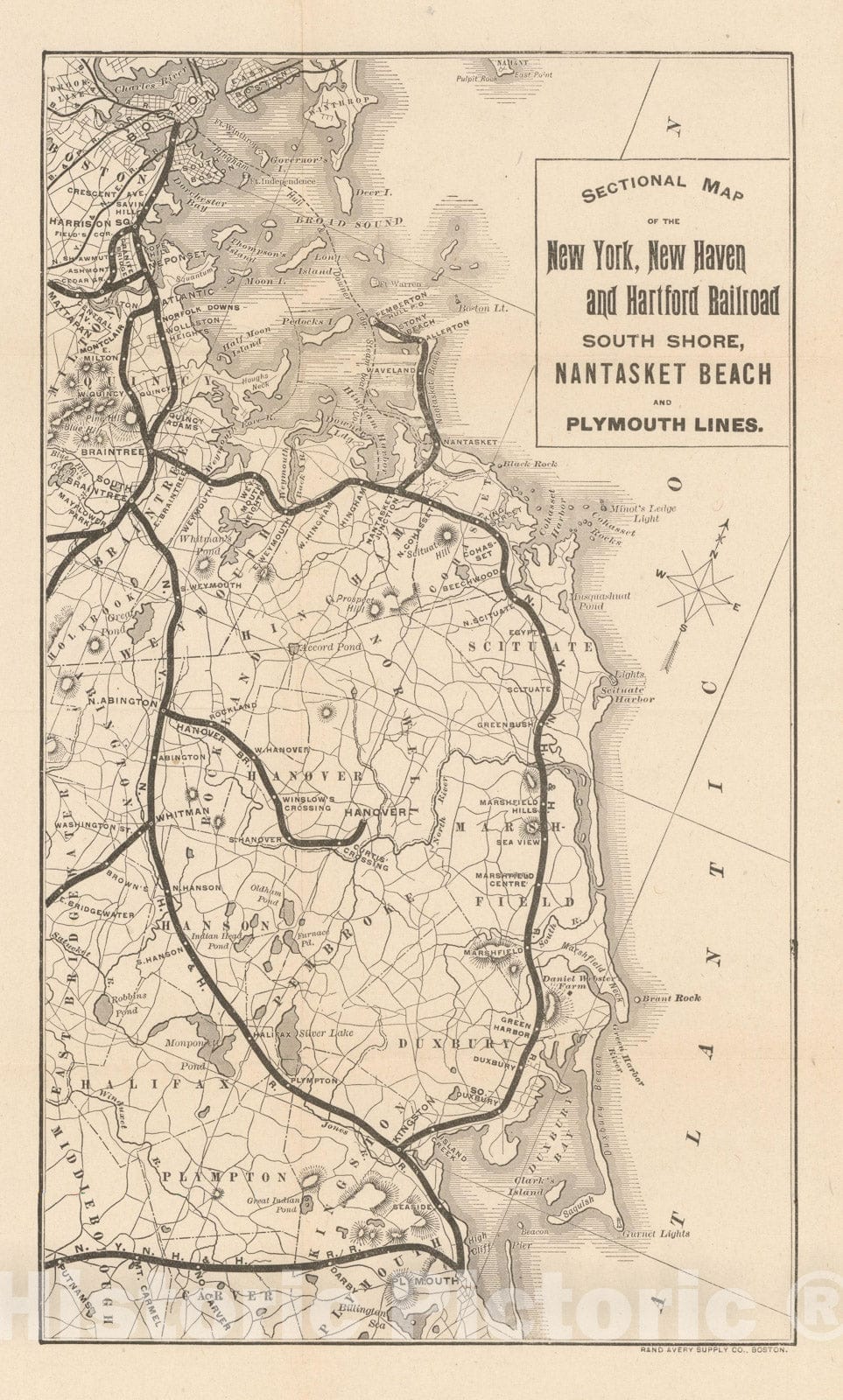Historic Map : Plymouth County, Boston South Shore Railroad Map 1900 Transit Cartography , Vintage Wall Art