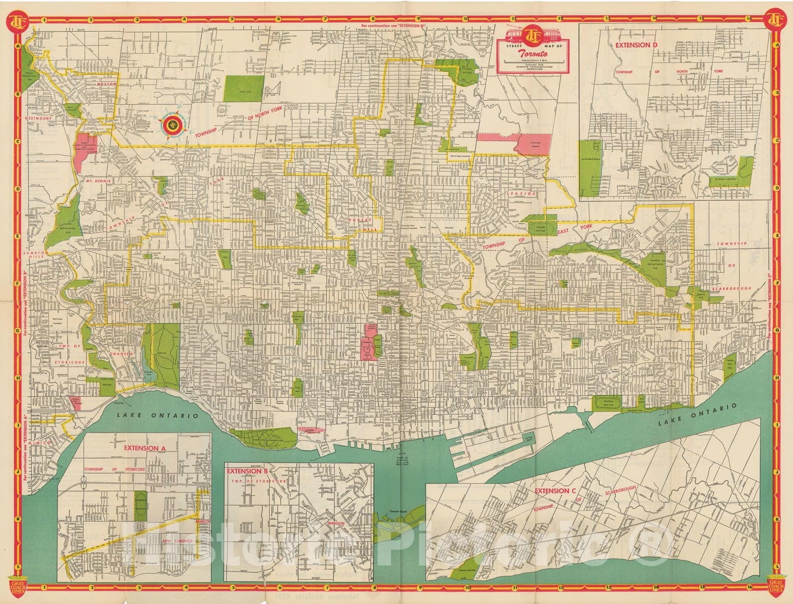 • .Historic Map : Toronto Transit and City Map 1948 Railroad Catography , Vintage Wall Art