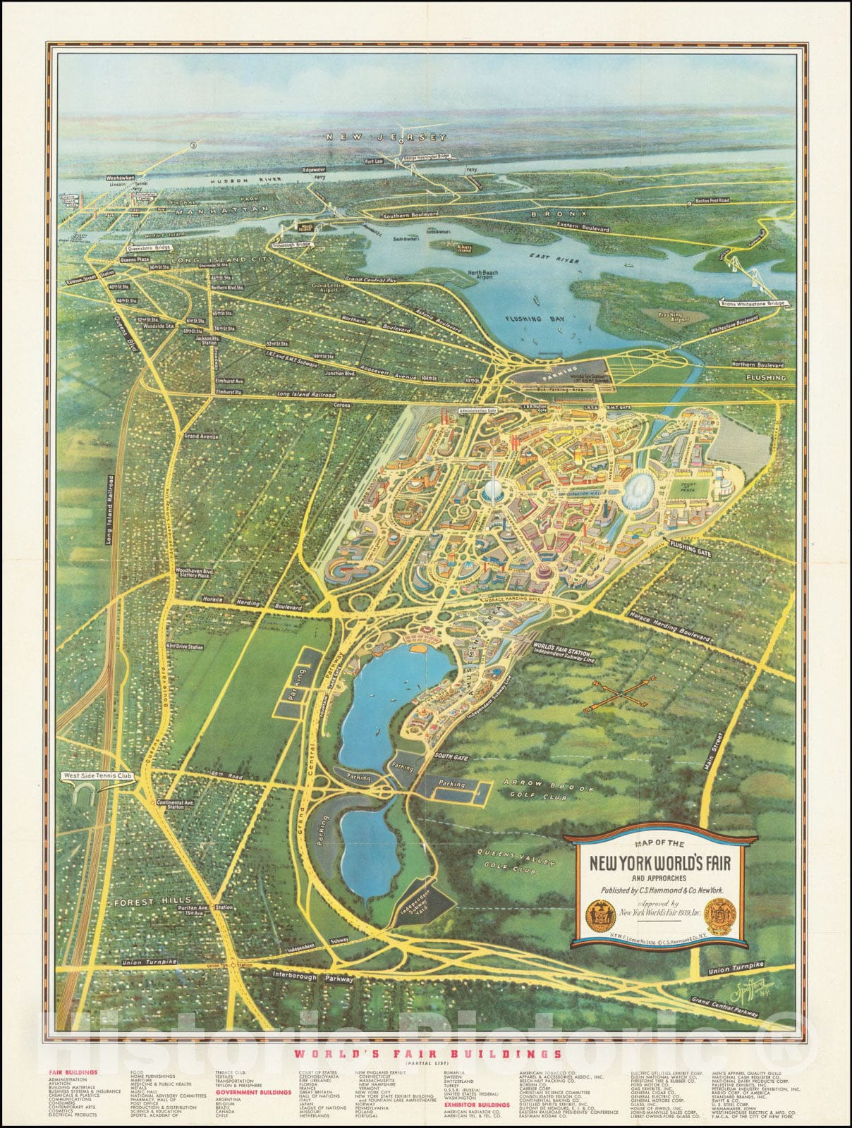 Historic Map : New York World's Fair and Approaches,Approved by New York World's Fair 1939, Rapid Transit Greater New York. Text: List of sights and skyscrapers, 1939, Vintage Wall Art