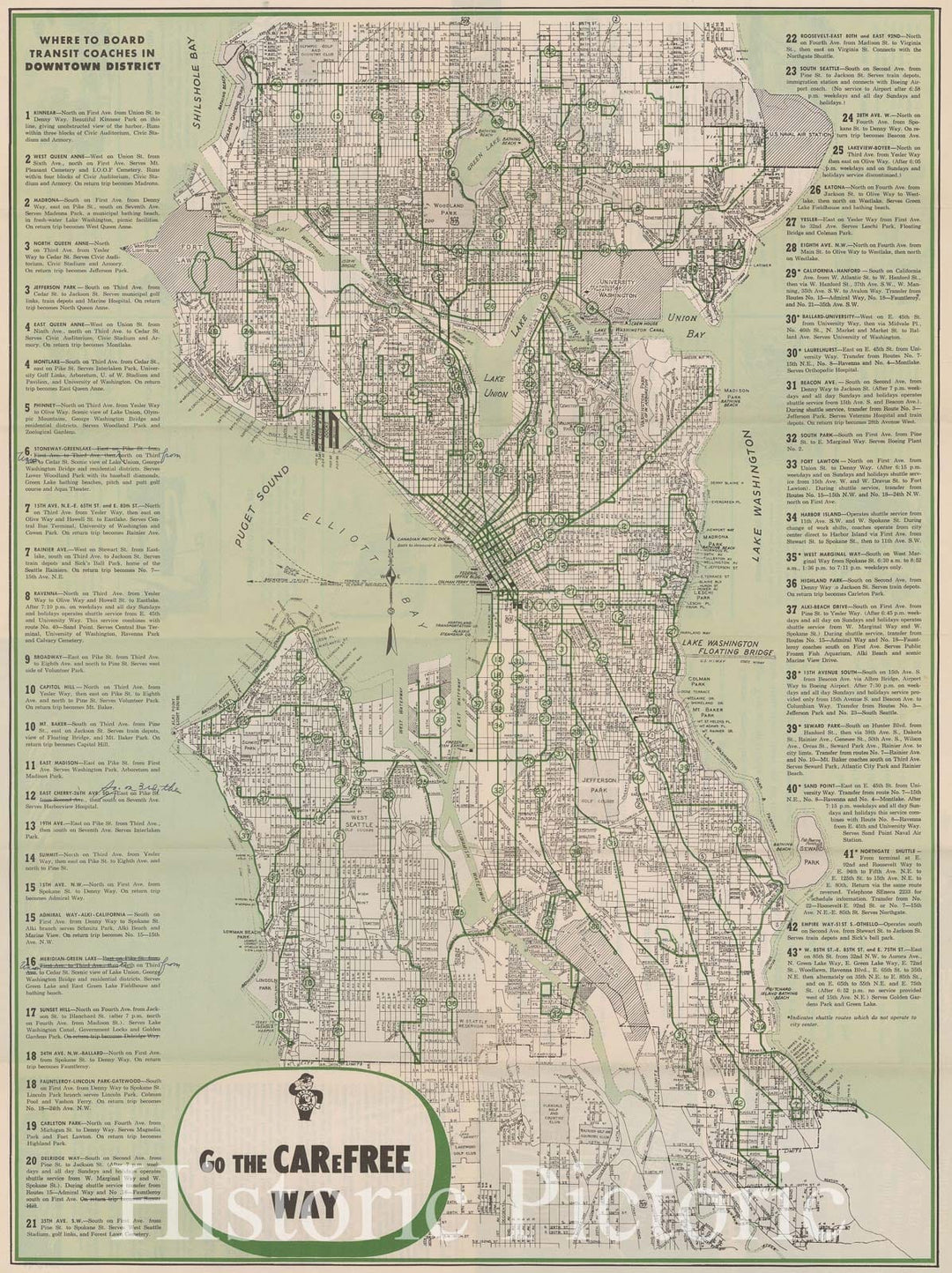 Historic Map : Seattle, Seattle Transit Map 1956 Railroad Catography , Vintage Wall Art