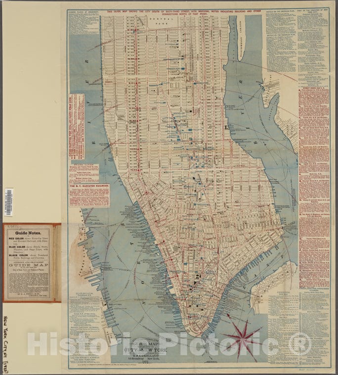 Historic 1877 Map - Citizens And Travelers' Guide Map In, To, And From The City Of New York And Adjacent Places.Of New York City And State - Manhattan