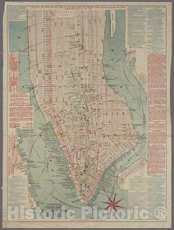 Historic 1877 Map - Citizens And Travelers' Guide Map In, To, And From The City Of New York And Adjacent Places.Of New York City And State - Manhattan, v2