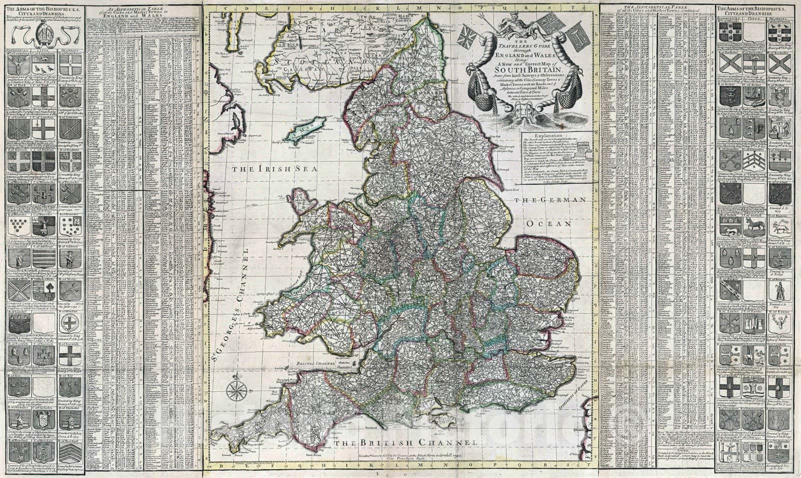 Historic Map : 1745 The Travellers Guide thorough England and Wales. - Vintage Wall Art