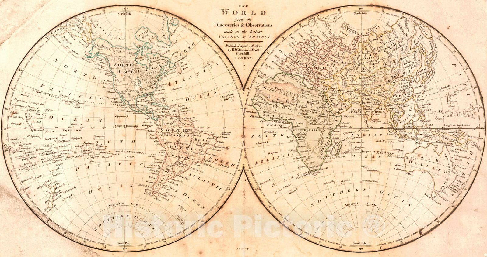 Historic Map : 1800 The World from the Discoveries and Obsercations made in the Latest Voyages and Travels : Vintage Wall Art