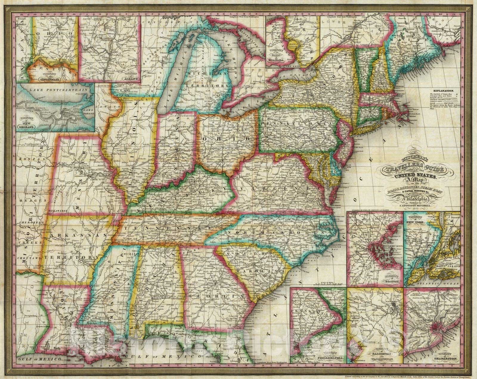 Historic Map : Guide Book - 1833 Traveller's Guide Through The United States - Vintage Wall Art
