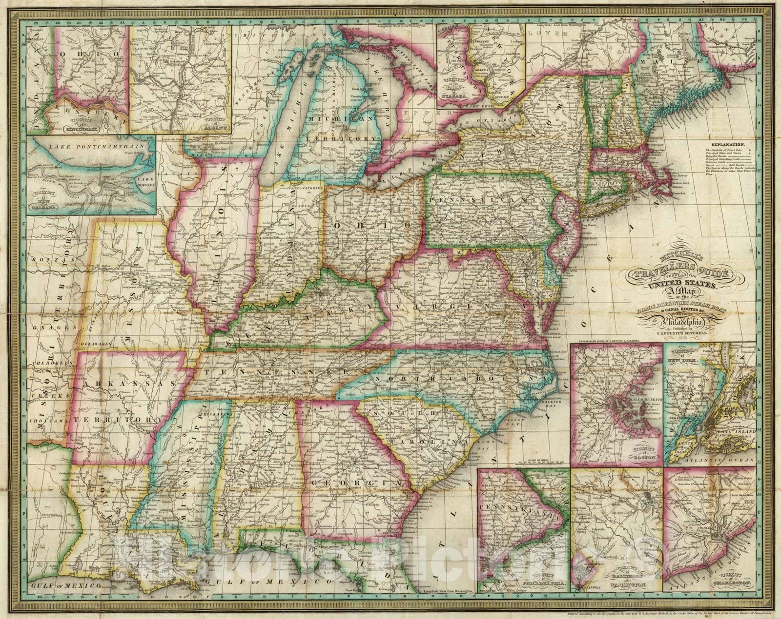 • .Historic Map : Guide Book - 1835 Traveller's Guide Through The United States - Vintage Wall Art