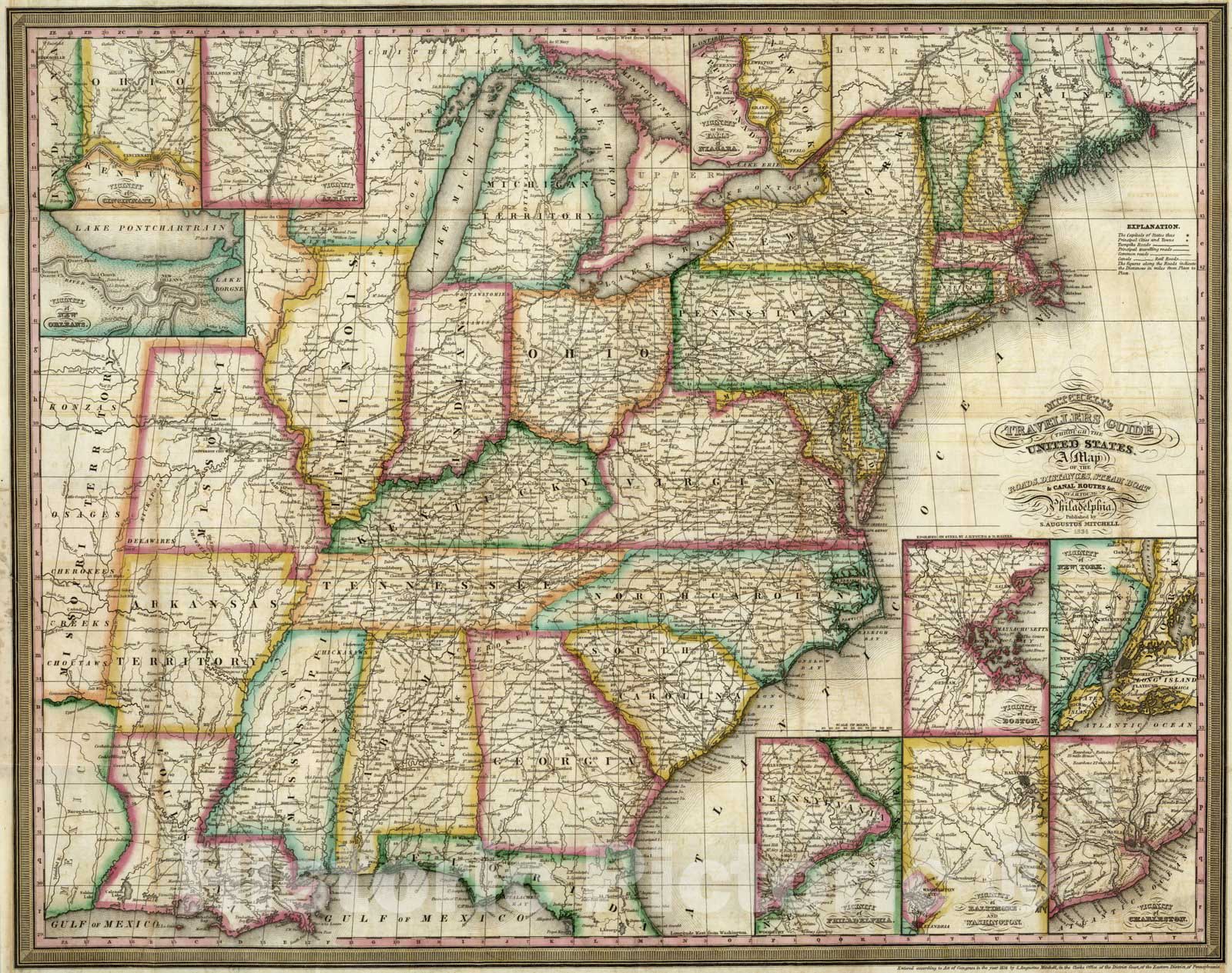 Historic Map : Guide Book, Traveller's Guide Through The United States 1834 - Vintage Wall Art