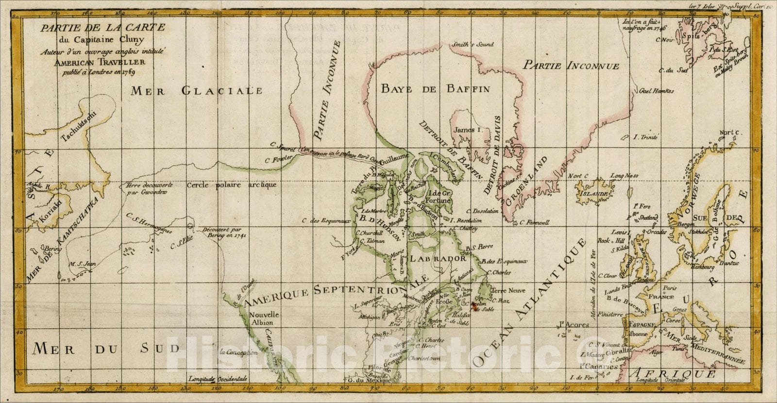 Historic Map : Partie De La Carte du Capitaine Cluny Autur d'un ouvrage anglois intitule American Traveller?1769, 1772, Denis Diderot, Vintage Wall Art