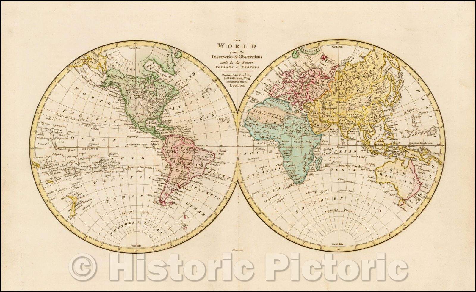 • .Historic Map - The World from the Discoveries & Observations in the Latest Voyages & Travels, 1817, Robert Wilkinson v1