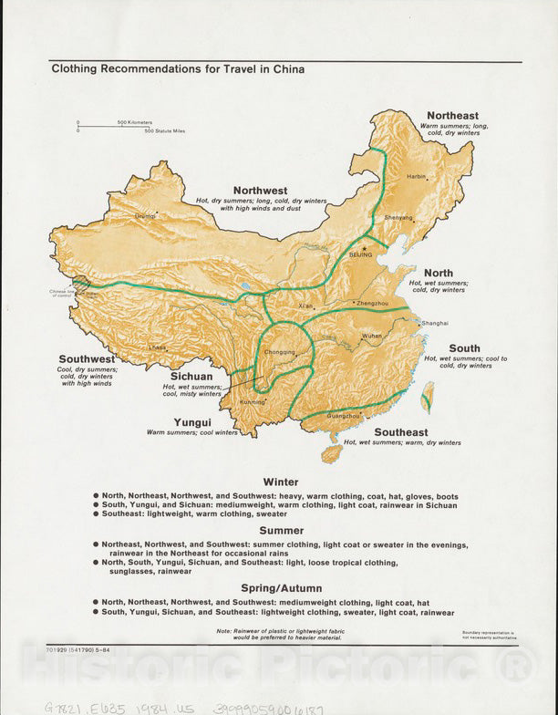 Historical Map, 1984 Clothing recommendations for Travel in China, Vintage Wall Art