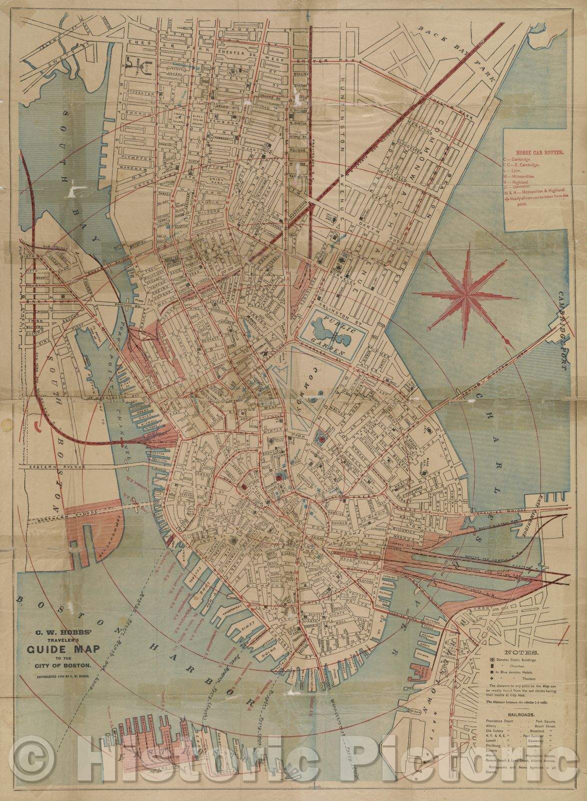 Historic Map : C.W. Hobbs' Traveler's Guide Map to the City of Boston., 1880 , Vintage Wall Art