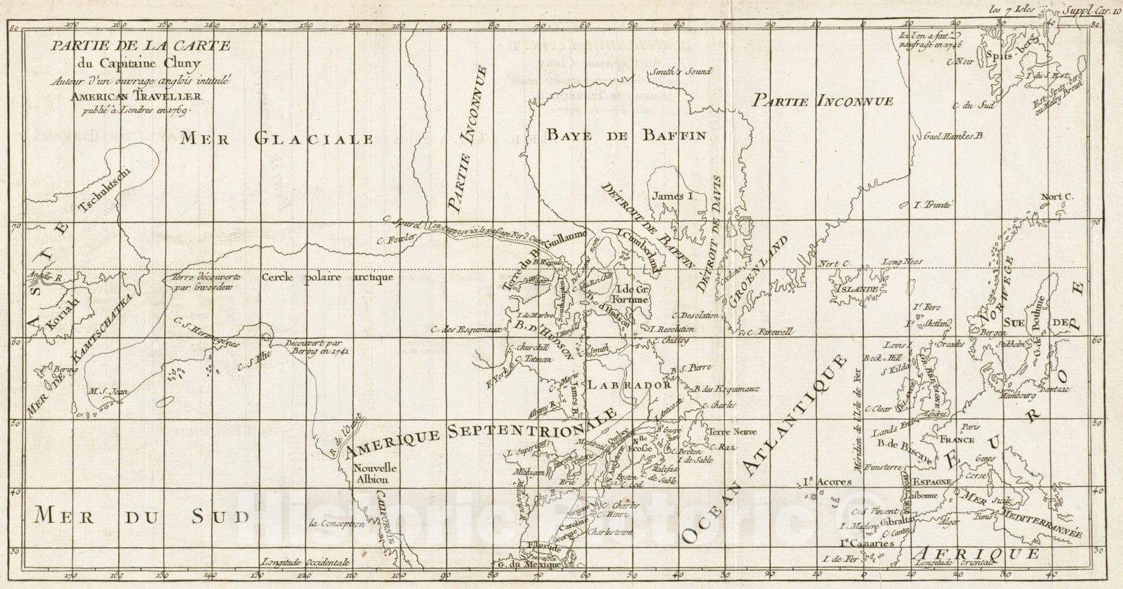 Historical Map, Partie de la Carte du Capitaine Cluny, auteur d'un ouvrage anglois intitule American Traveller publie a Londres en 1769, Vintage Wall Art