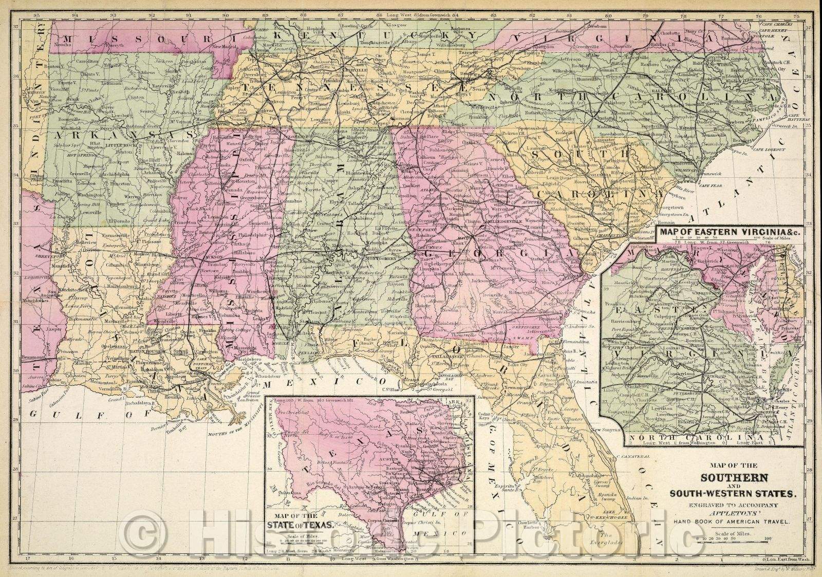 Historic Map : Map of the Southern and South-Western States. Engraved to Accompany Appleton's Handbook of American Travel., 1849 , Vintage Wall Art