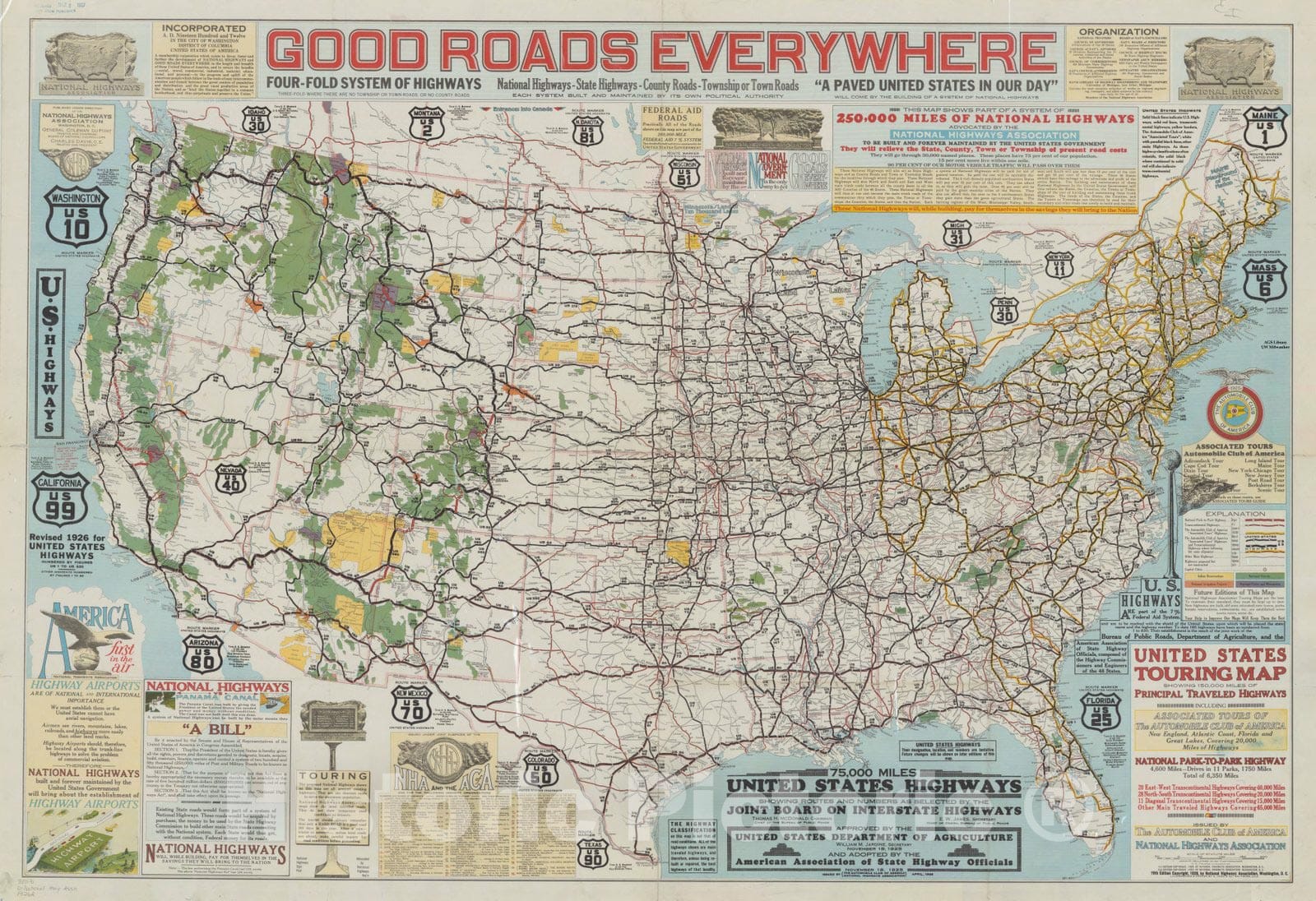 Historic Map : United States 1926 1, United States touring map, showing 150,000 miles of principal traveled highways