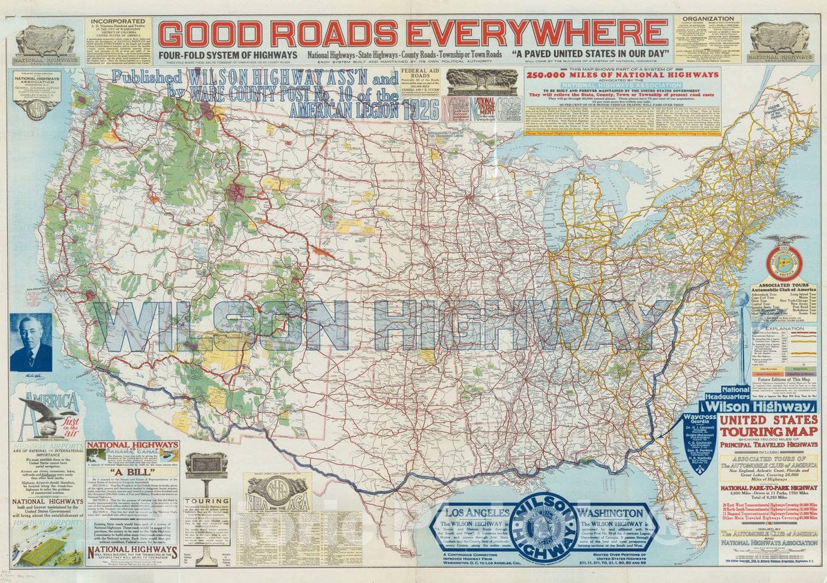 Historic Map : United States 1926 2, United States touring map, showing 150,000 miles of principal traveled highways