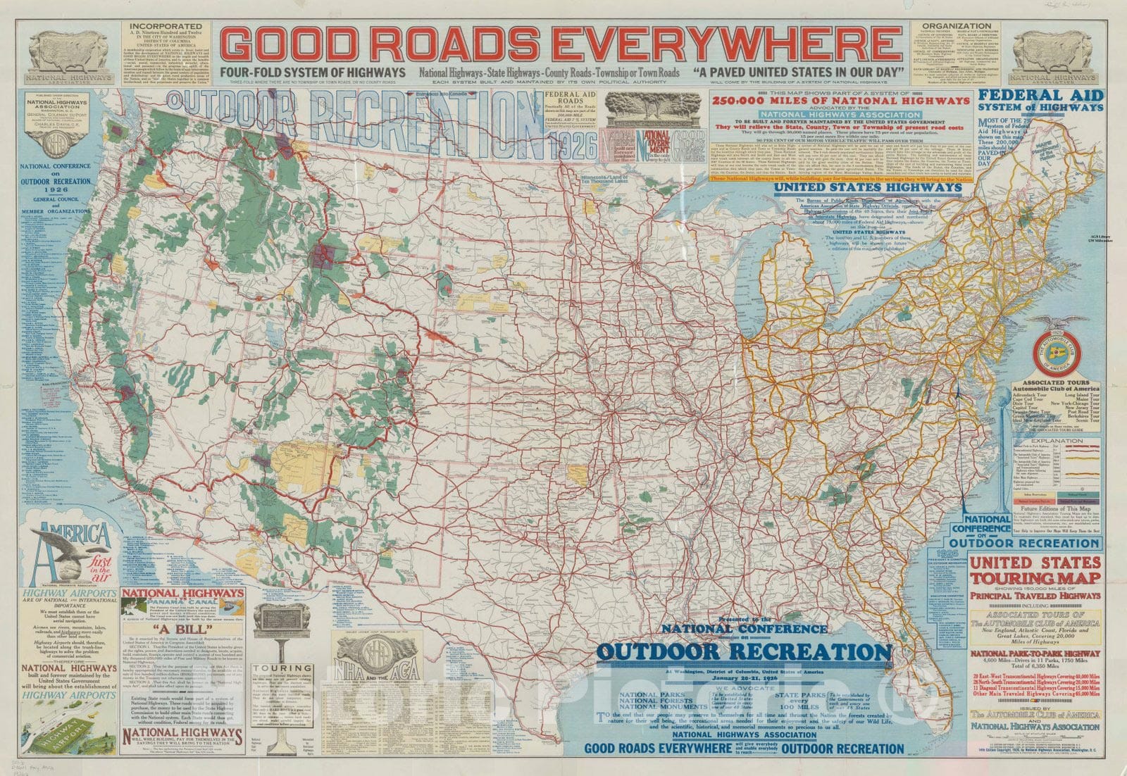 Historic Map : United States 1926 5, United States touring map, showing 150,000 miles of principal traveled highways
