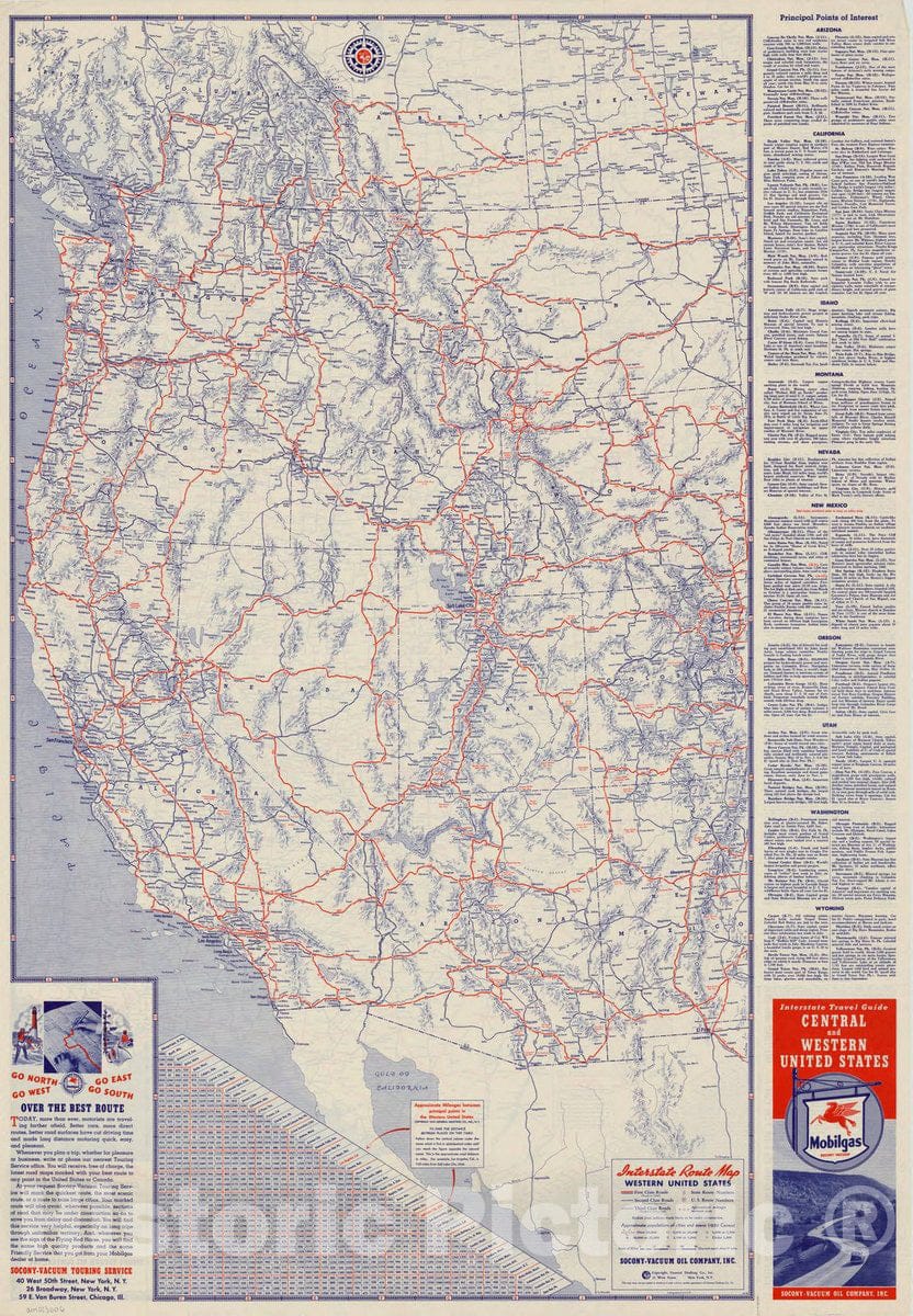 Interstate travel guide : central and western United States / [prepared for Mobilgas Socony-Vacuum by] the General Drafting Company